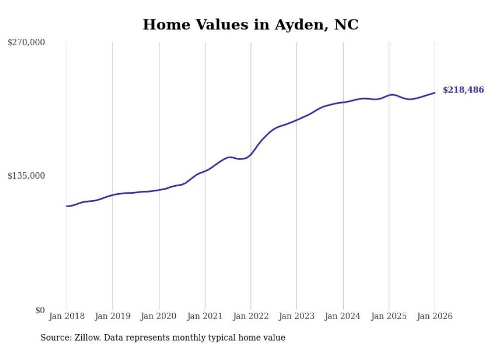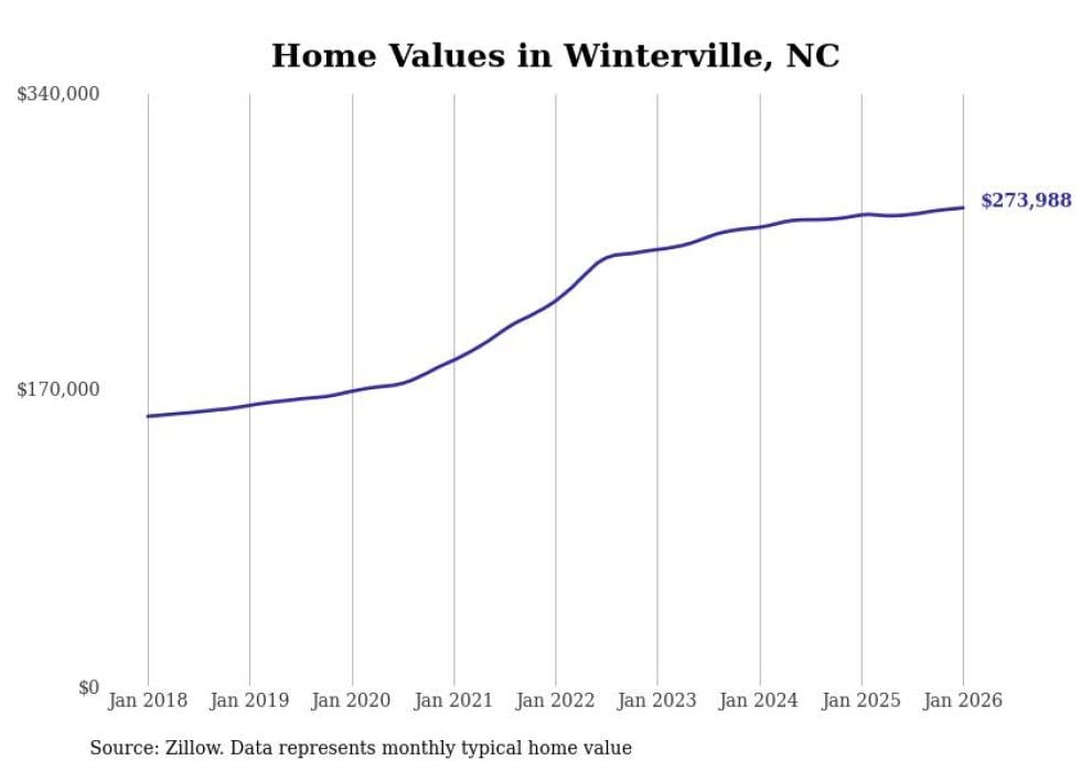 Stacker compiled a list of cities with the most expensive homes in the Greenville, NC metro area using data from Zillow. Charts show the monthly typical home value since January 2018.