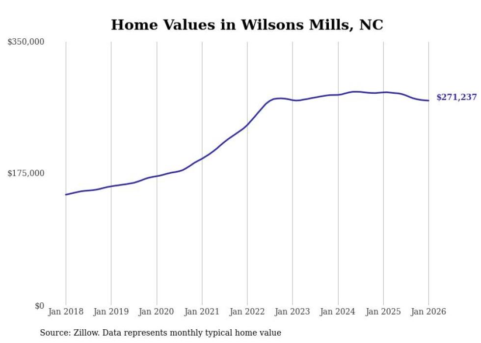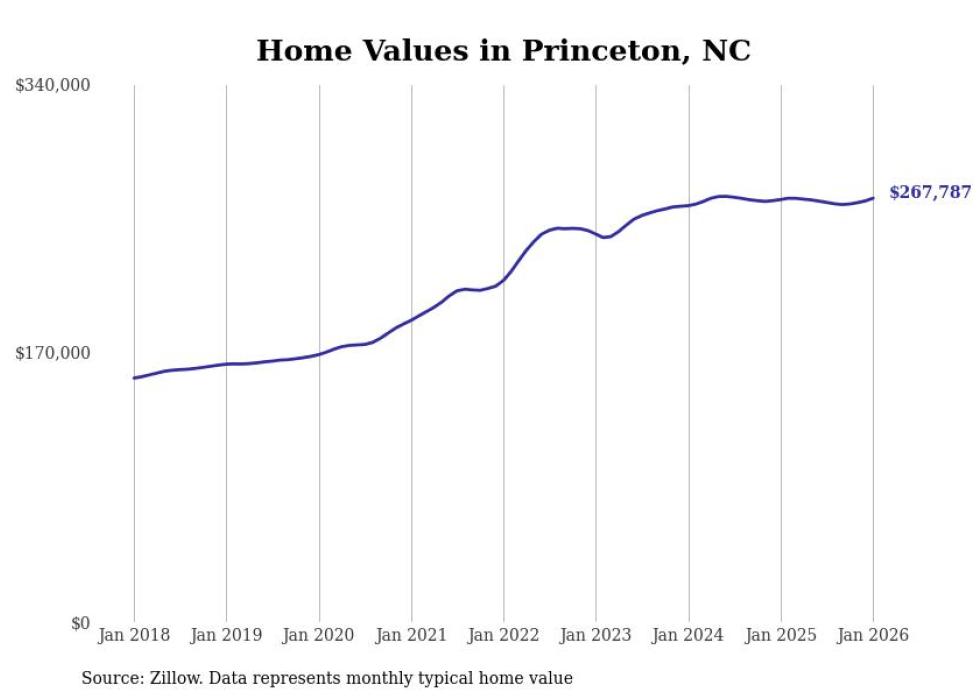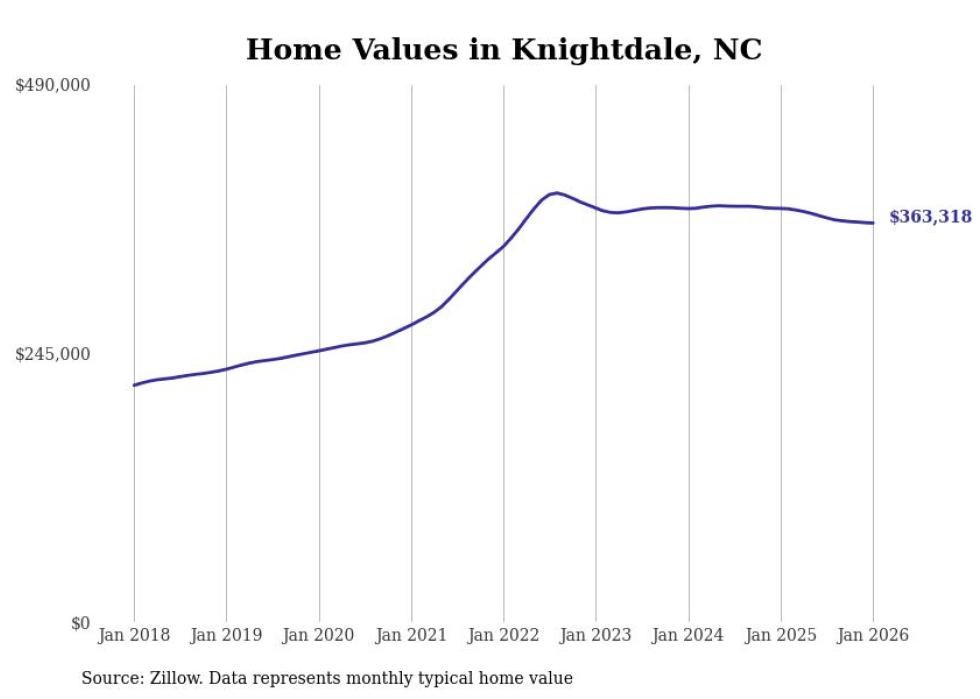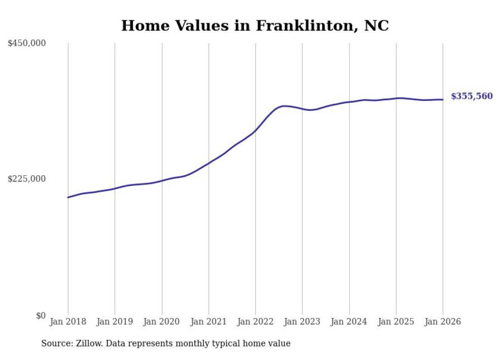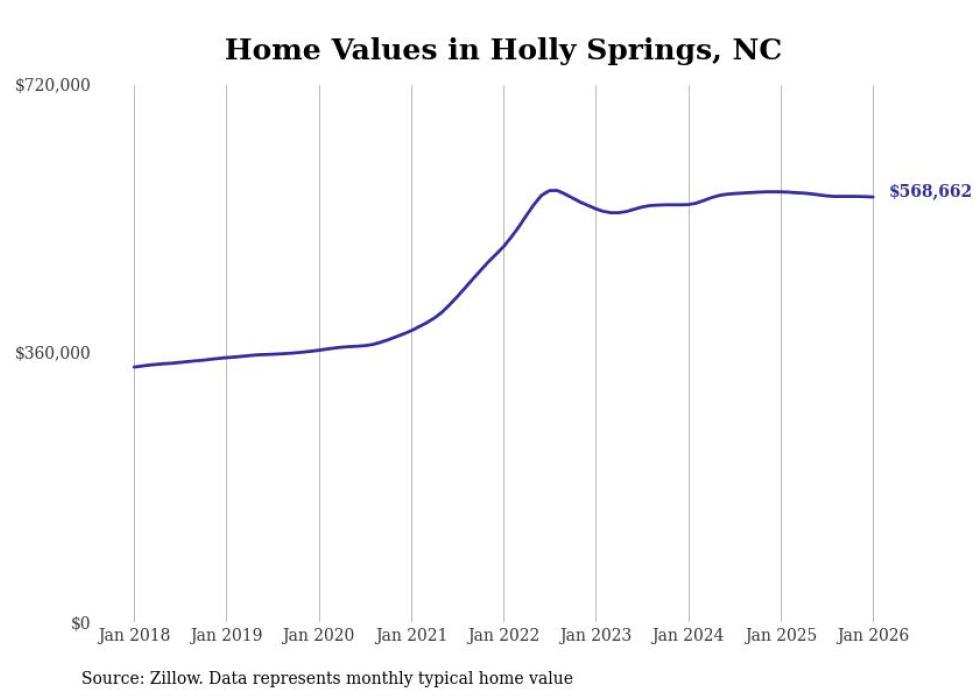 Stacker compiled a list of cities with the most expensive homes in the Raleigh-Cary, NC metro area using data from Zillow. Charts show the monthly typical home value since January 2018.