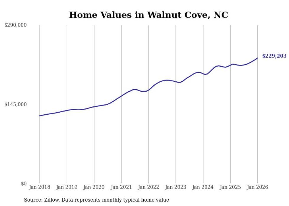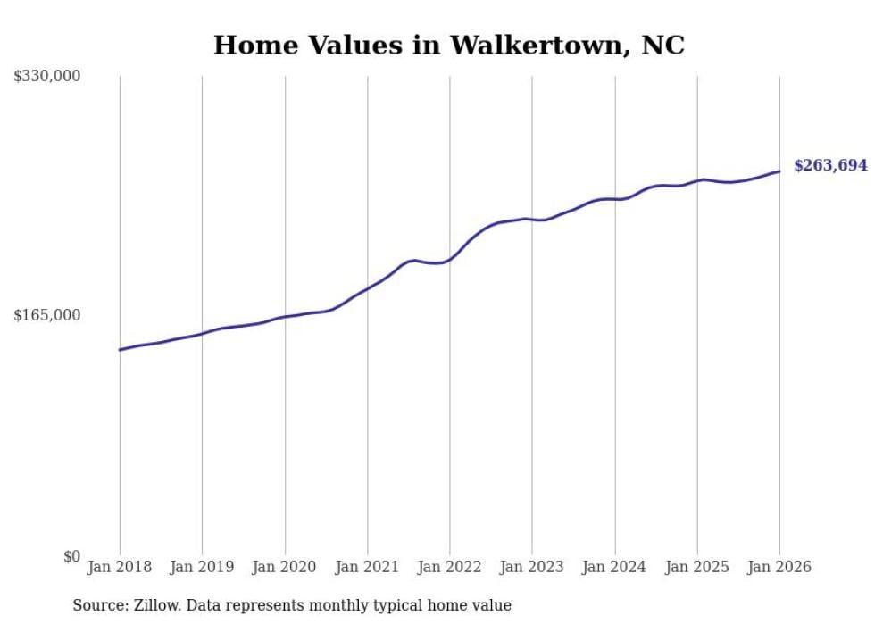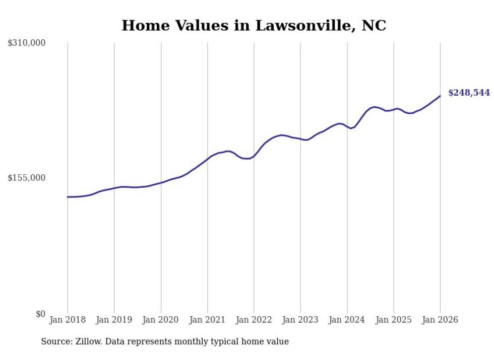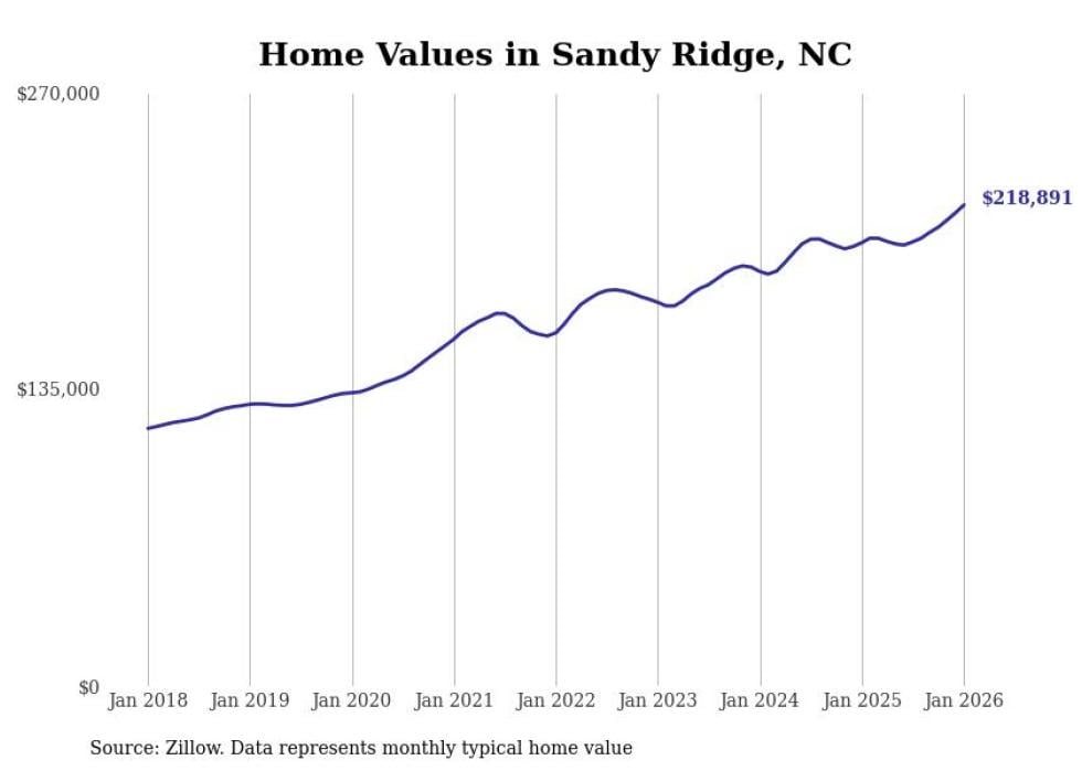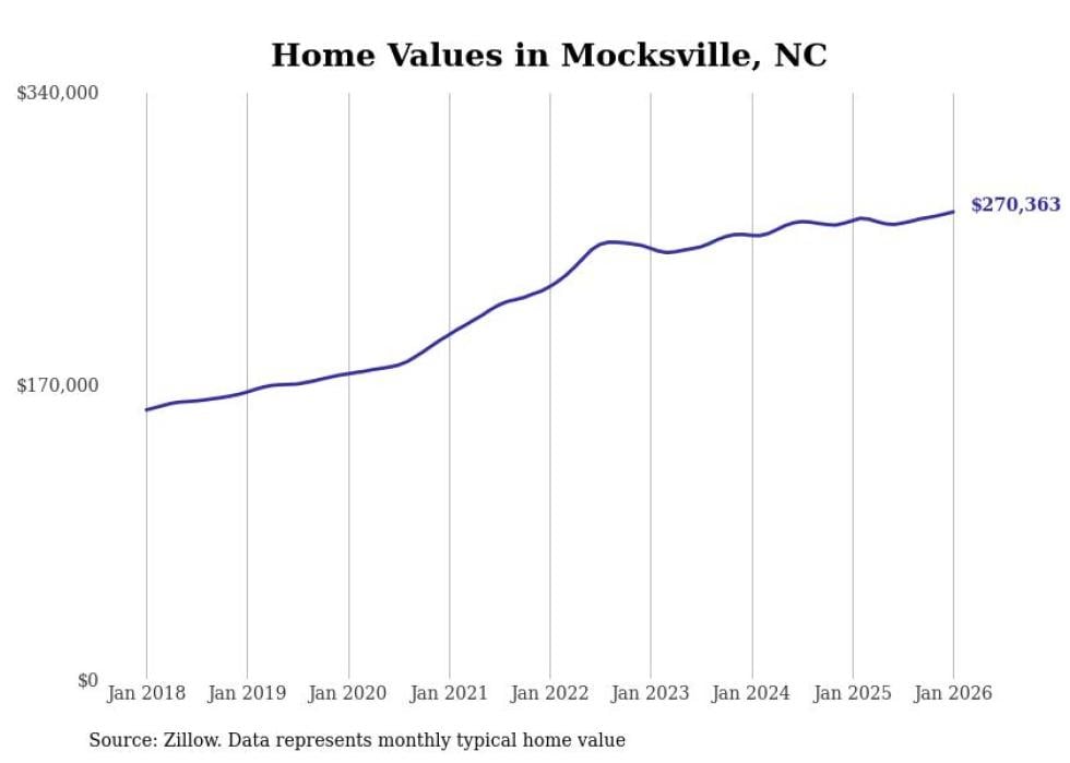 Stacker compiled a list of cities with the most expensive homes in the Winston-Salem, NC metro area using data from Zillow. Charts show the monthly typical home value since January 2018.