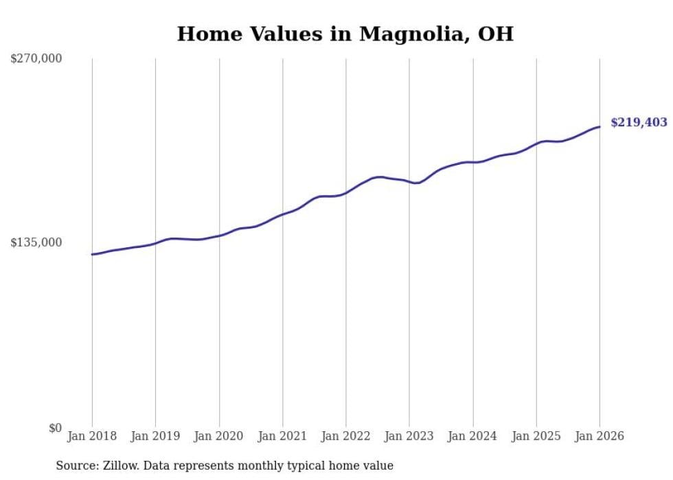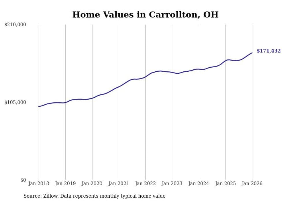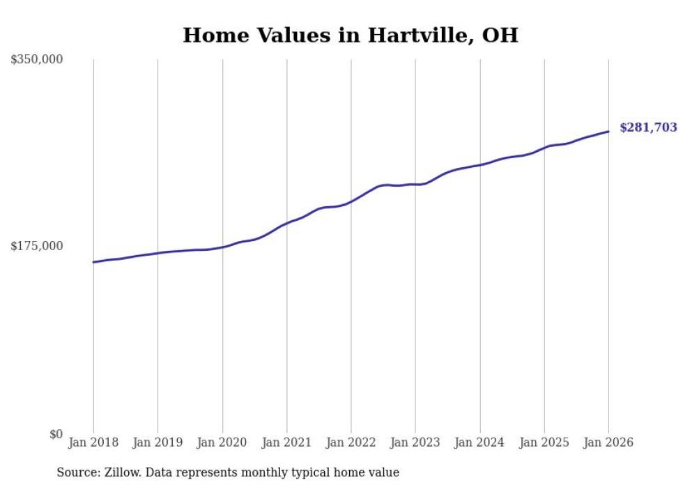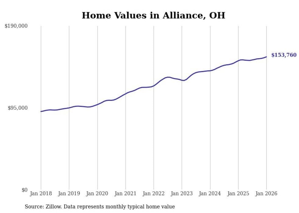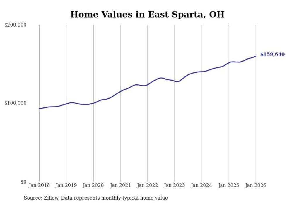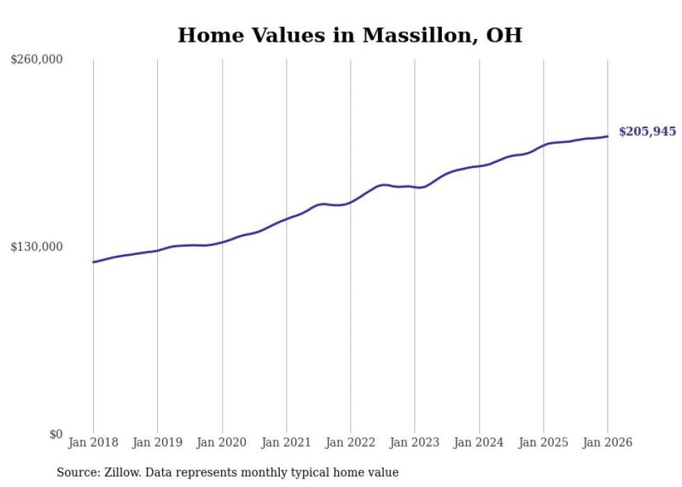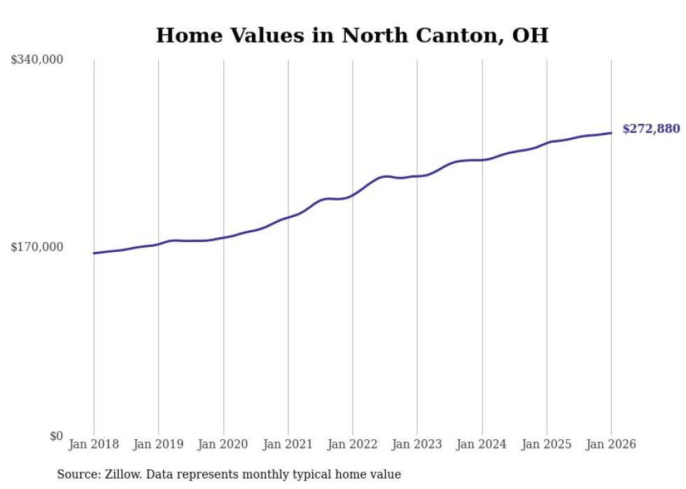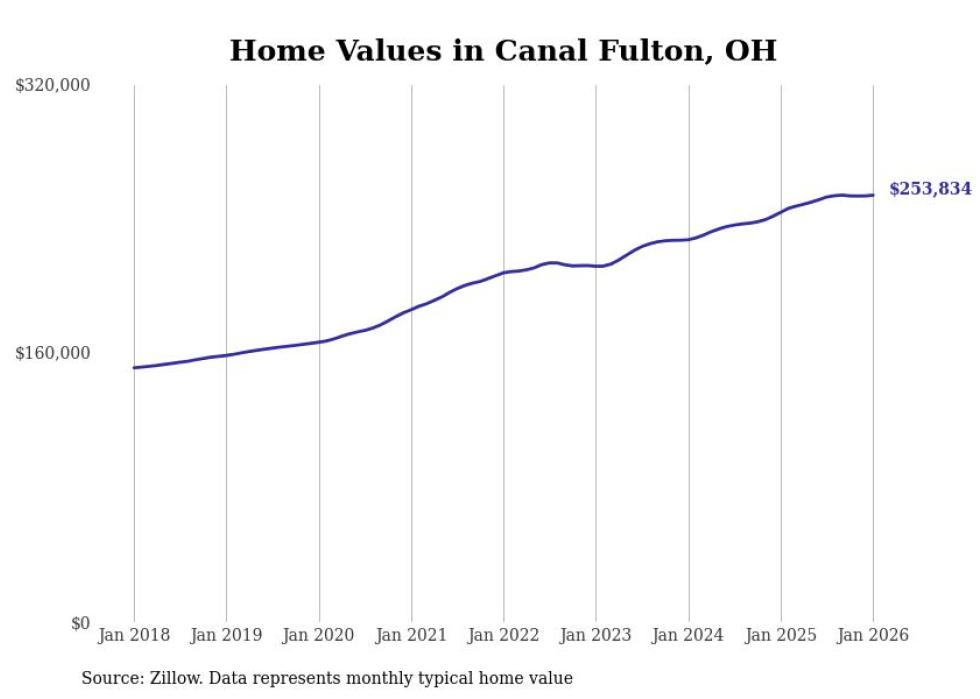 Stacker compiled a list of cities with the most expensive homes in the Canton metro area using data from Zillow. Charts show the monthly typical home value since January 2018. All 26 cities and towns with data available were included in the list.