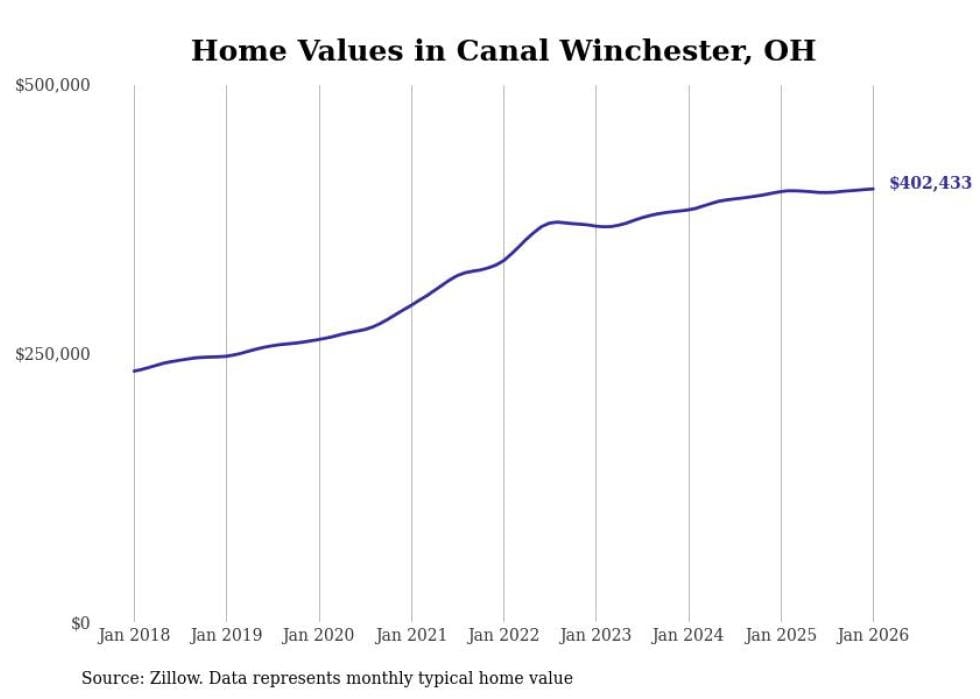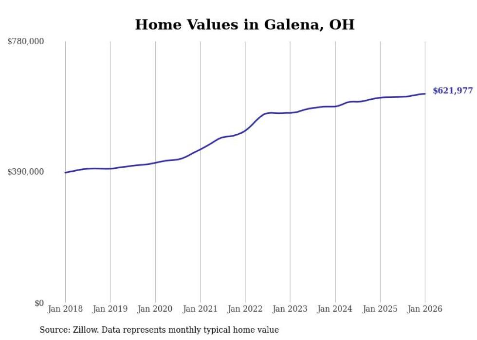Stacker compiled a list of cities with the most expensive homes in the Columbus metro area using data from Zillow. Charts show the monthly typical home value since January 2018. Data was available for 98 cities and towns.