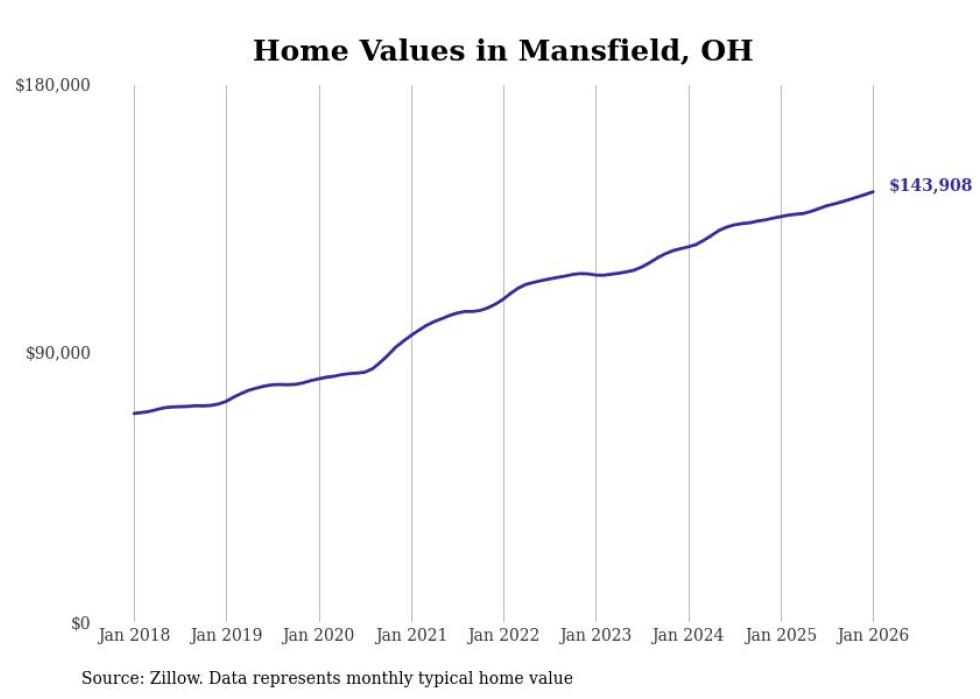 Stacker compiled a list of cities with the most expensive homes in the Mansfield metro area using data from Zillow. Charts show the monthly typical home value since January 2018. All 9 cities and towns with data available were included in the list.