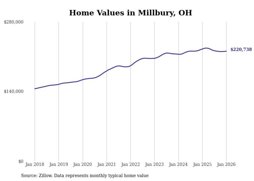 Stacker compiled a list of cities with the most expensive homes in the Toledo metro area using data from Zillow. Charts show the monthly typical home value since January 2018. Data was available for 49 cities and towns.