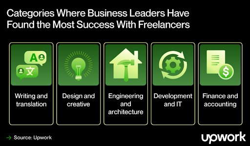 Technical and financial tasks also stand out. Leaders said engineering and architecture projects benefit from specialized independent talent, particularly when they require niche skills for a defined period. Development and IT support are also common freelance categories, helping small businesses build and maintain their digital tools without hiring full-time staff.