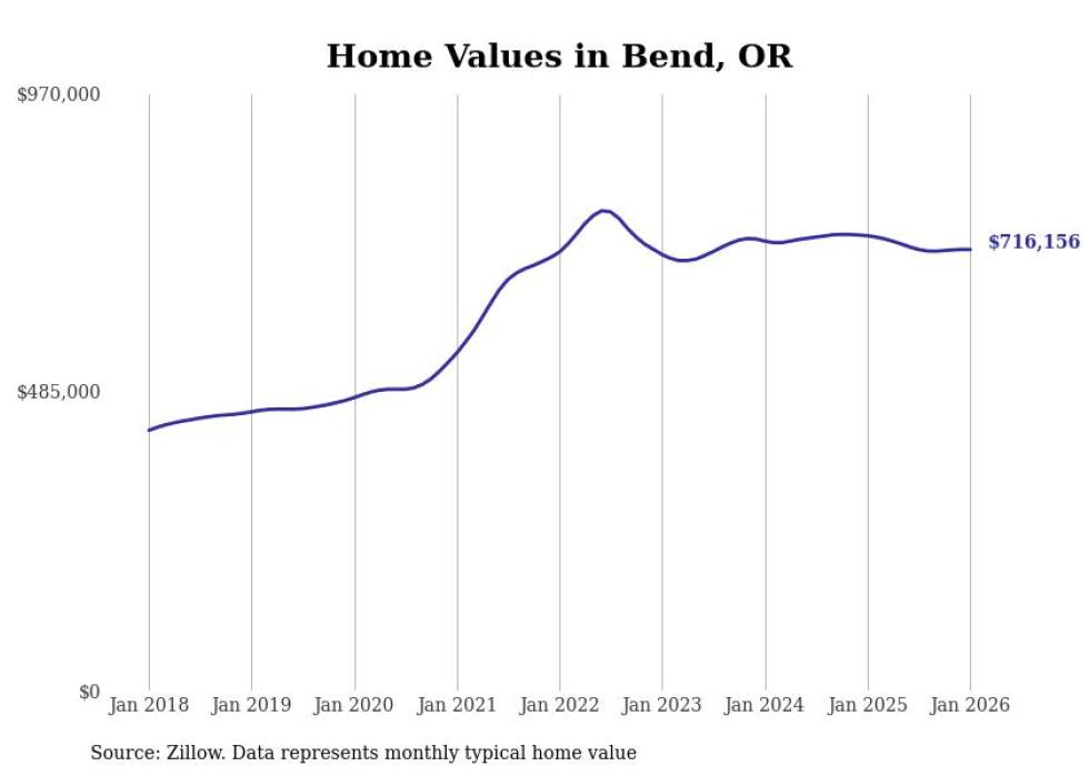 Stacker compiled a list of cities with the most expensive homes in the Bend metro area using data from Zillow. Charts show the monthly typical home value since January 2018. All 4 cities and towns with data available were included in the list.