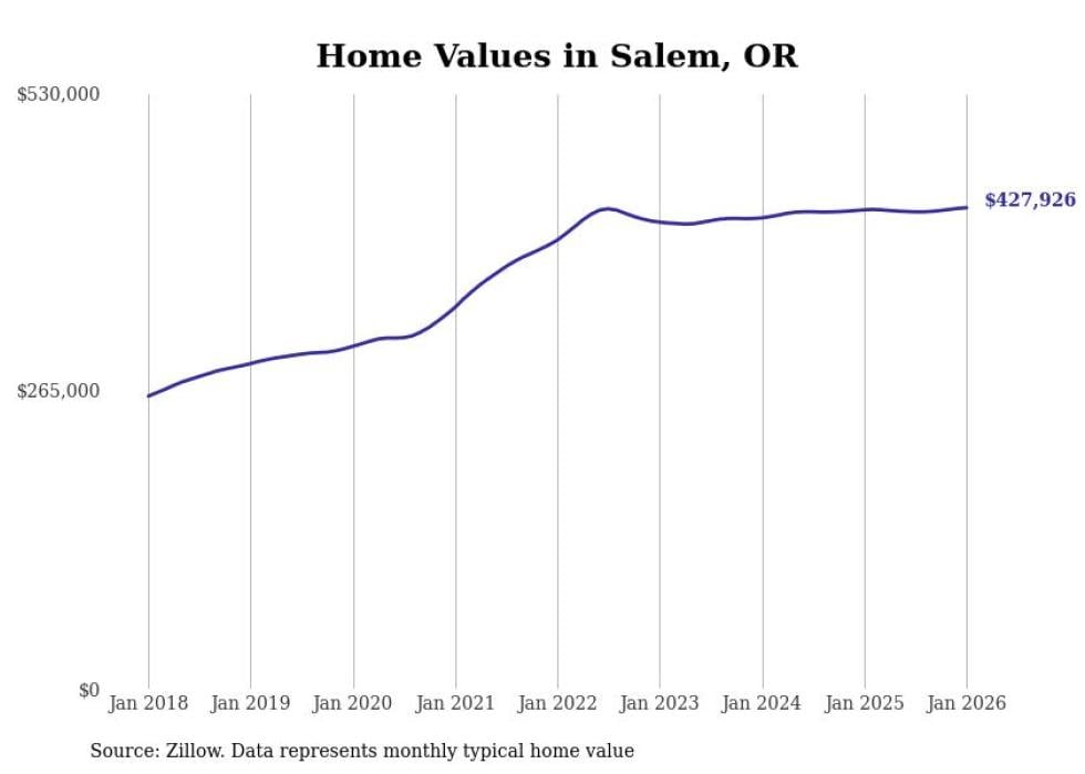 Stacker compiled a list of cities with the most expensive homes in the Salem metro area using data from Zillow. Charts show the monthly typical home value since January 2018. All 26 cities and towns with data available were included in the list.