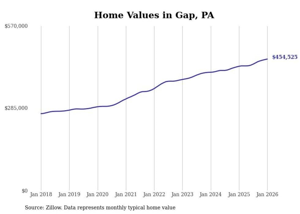 Stacker compiled a list of cities with the most expensive homes in the Lancaster metro area using data from Zillow. Charts show the monthly typical home value since January 2018. All 17 cities and towns with data available were included in the list.