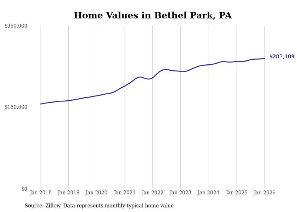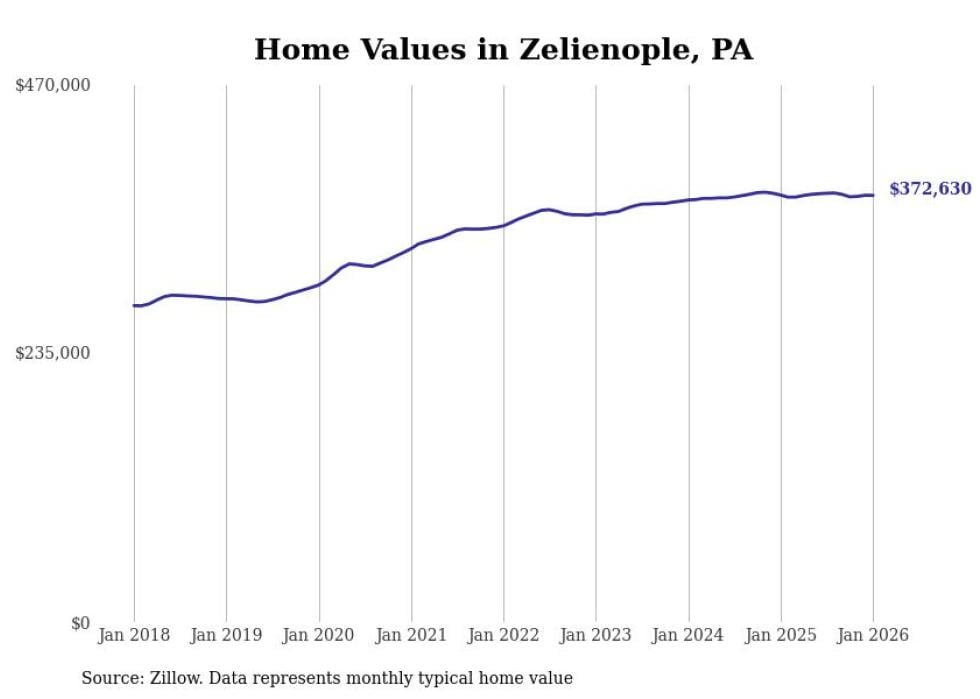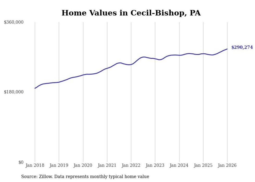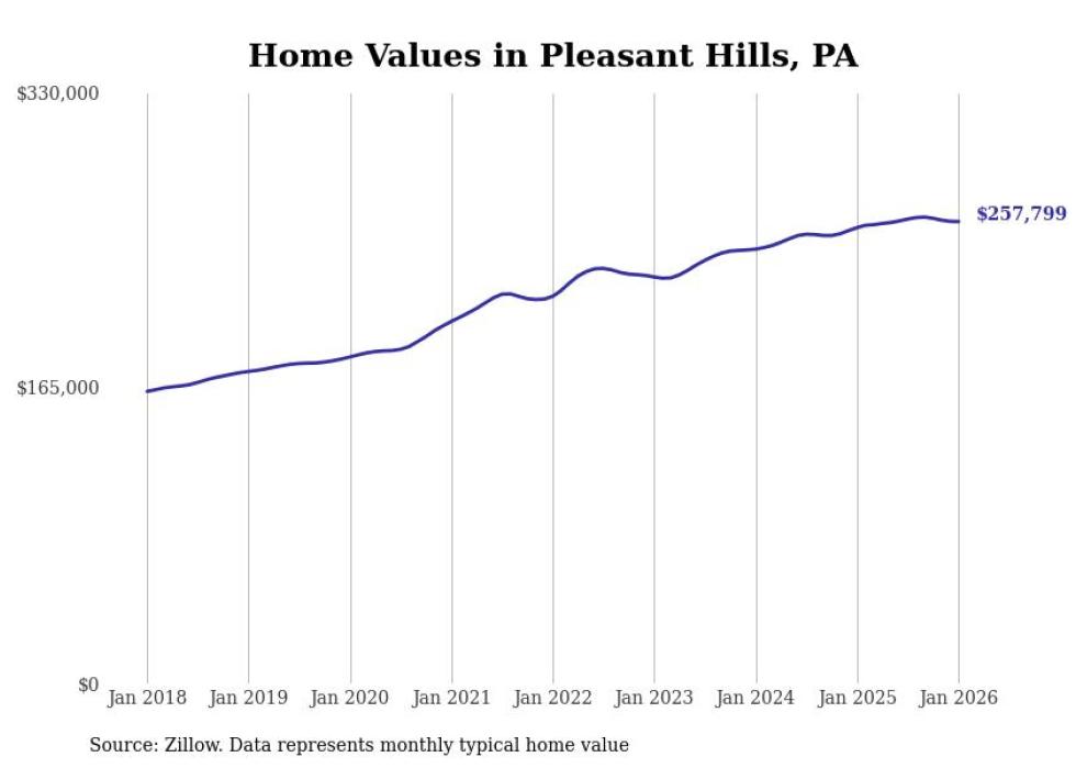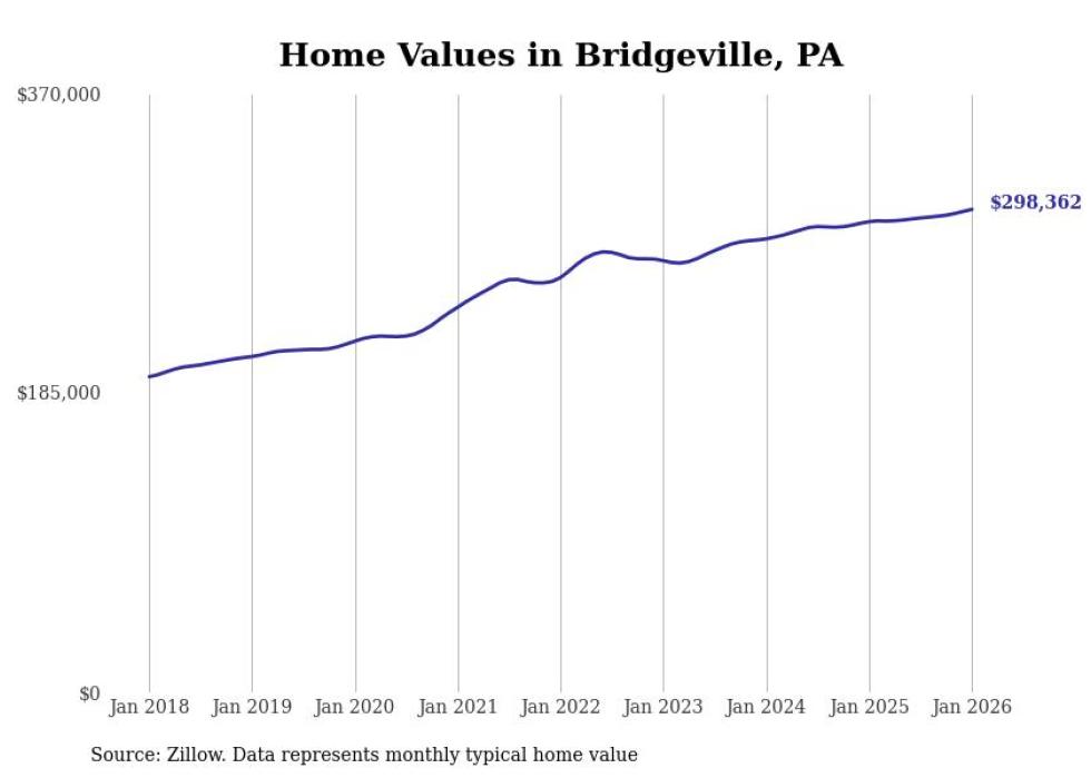 Stacker compiled a list of cities with the most expensive homes in the Pittsburgh metro area using data from Zillow. Charts show the monthly typical home value since January 2018. Data was available for 147 cities and towns.
