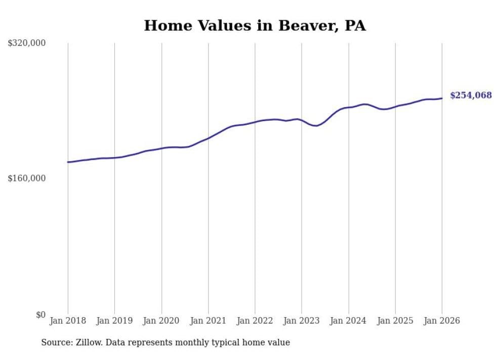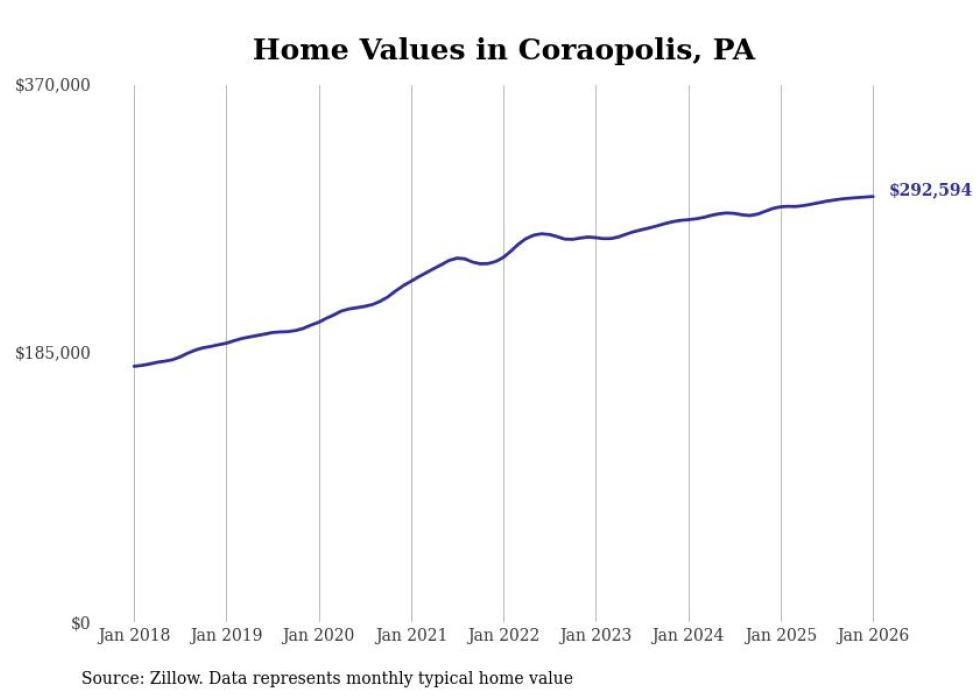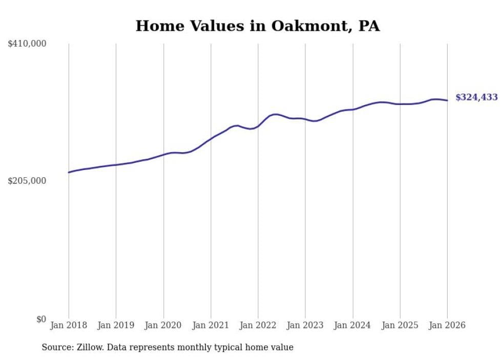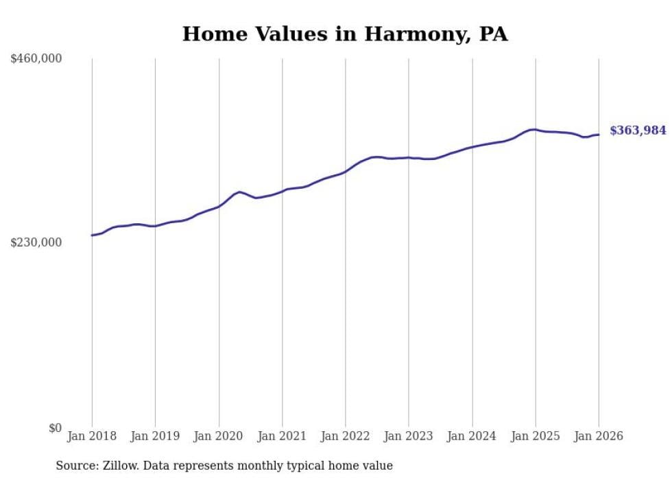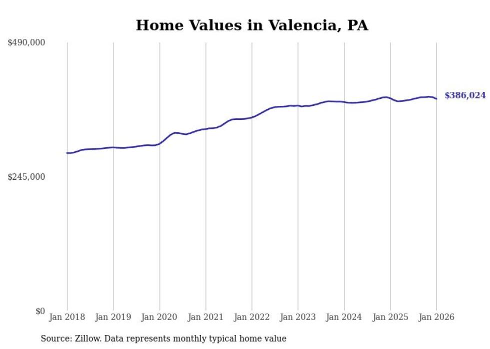 Stacker compiled a list of cities with the most expensive homes in the Pittsburgh metro area using data from Zillow. Charts show the monthly typical home value since January 2018. Data was available for 147 cities and towns.