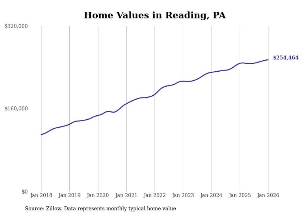 Stacker compiled a list of cities with the most expensive homes in the Reading metro area using data from Zillow. Charts show the monthly typical home value since January 2018. All 24 cities and towns with data available were included in the list.