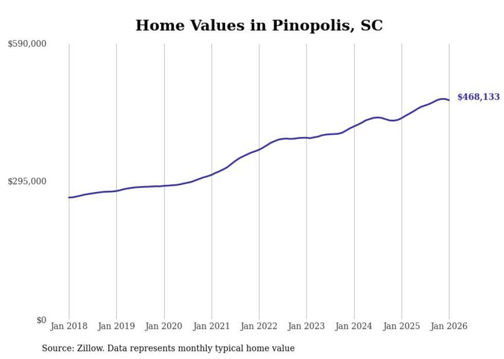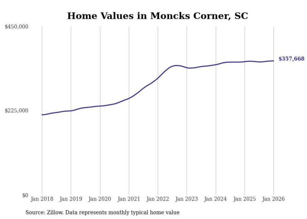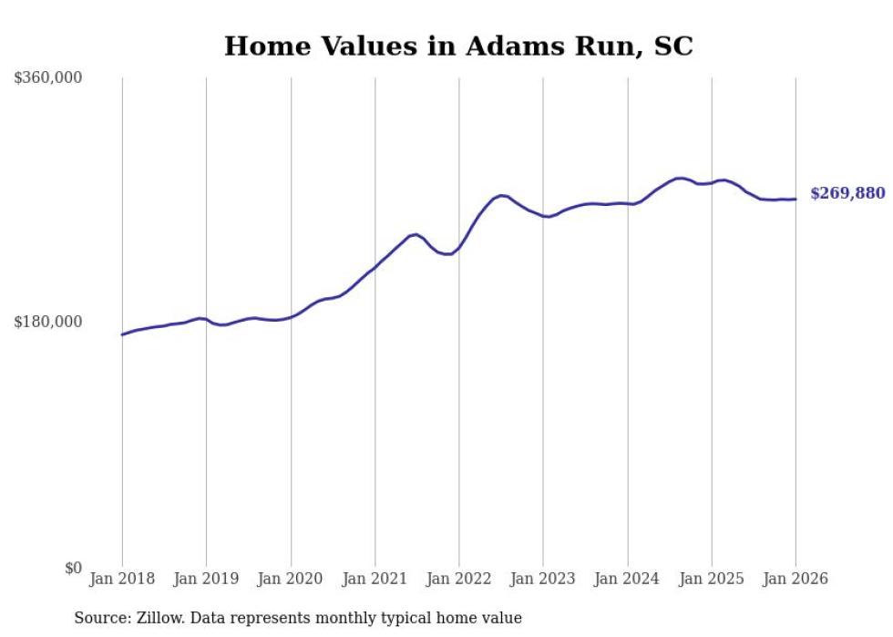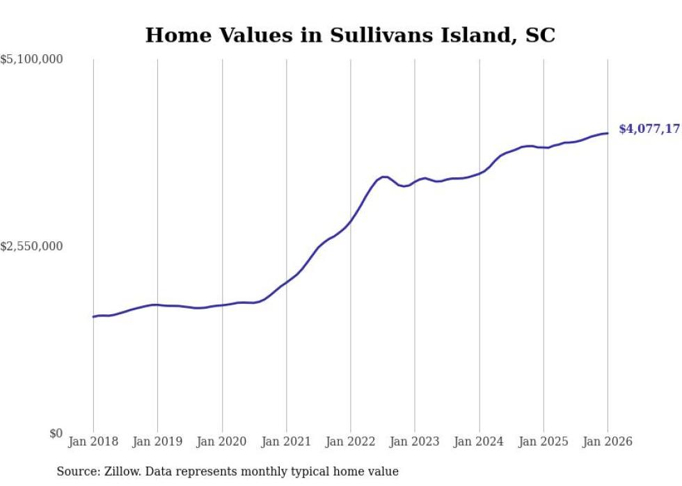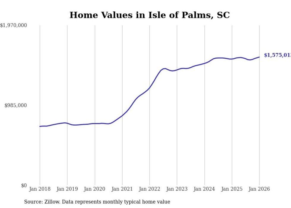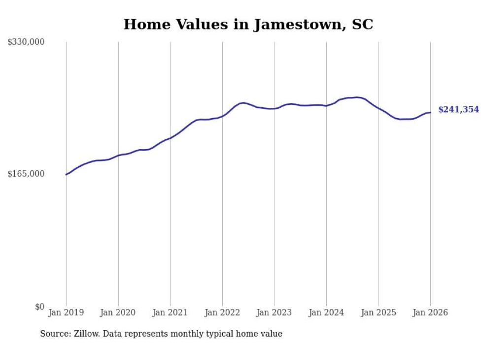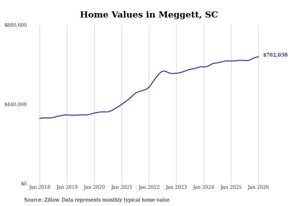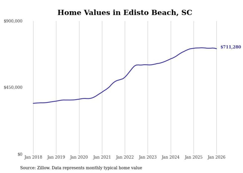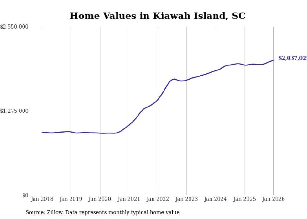 Stacker compiled a list of cities with the most expensive homes in the Charleston, South Carolina metro area using data from Zillow. Charts show the monthly typical home value since January 2018. Data was available for 35 cities and towns.