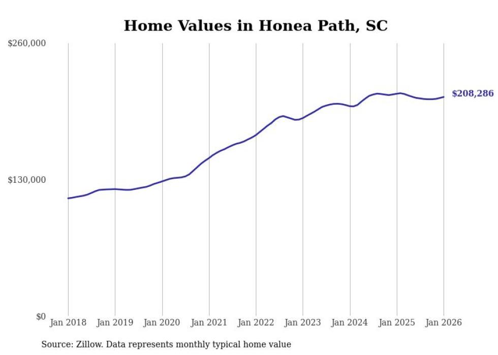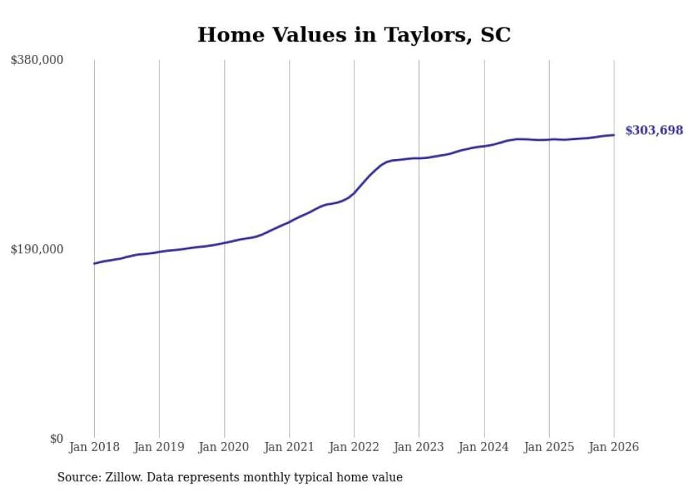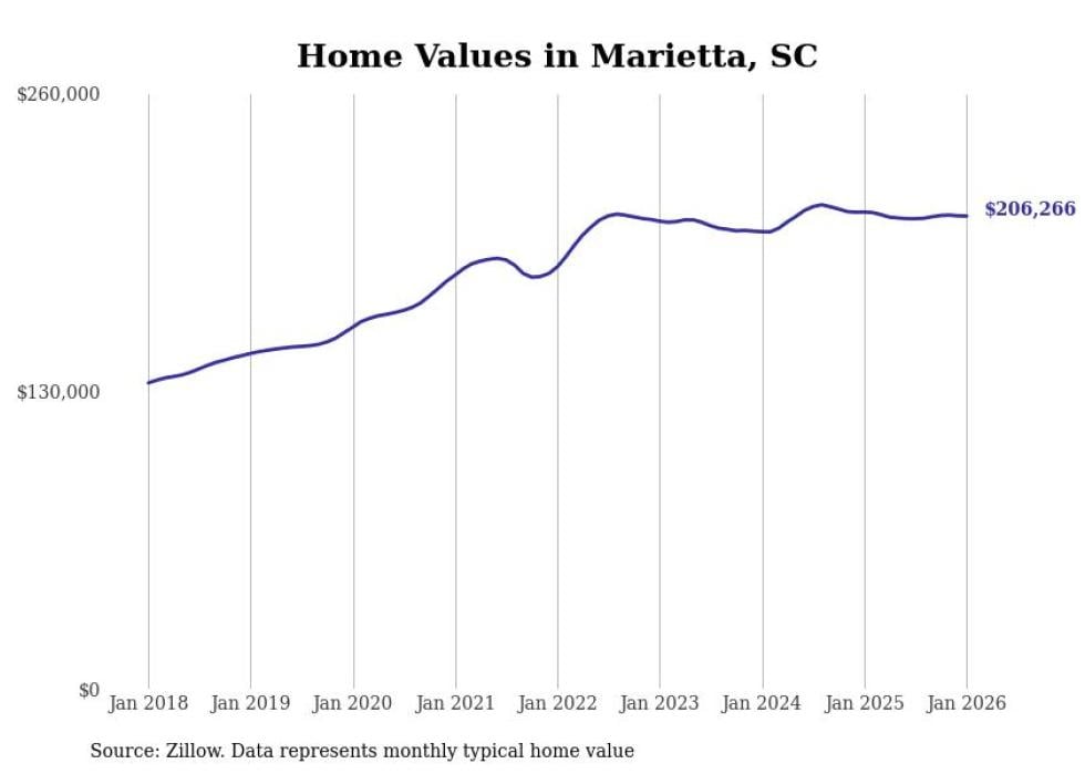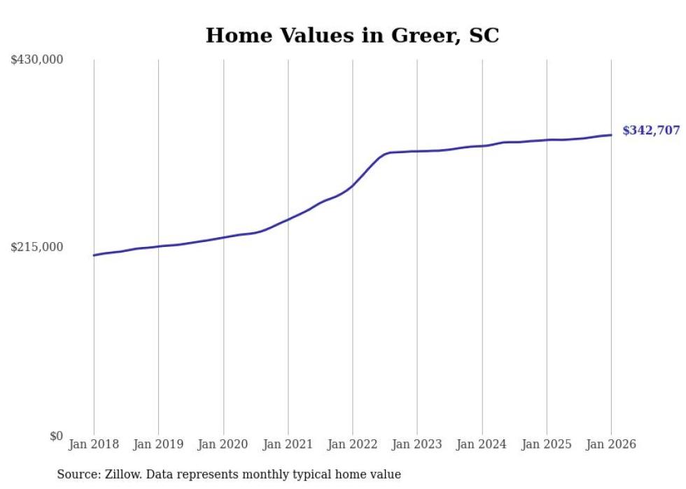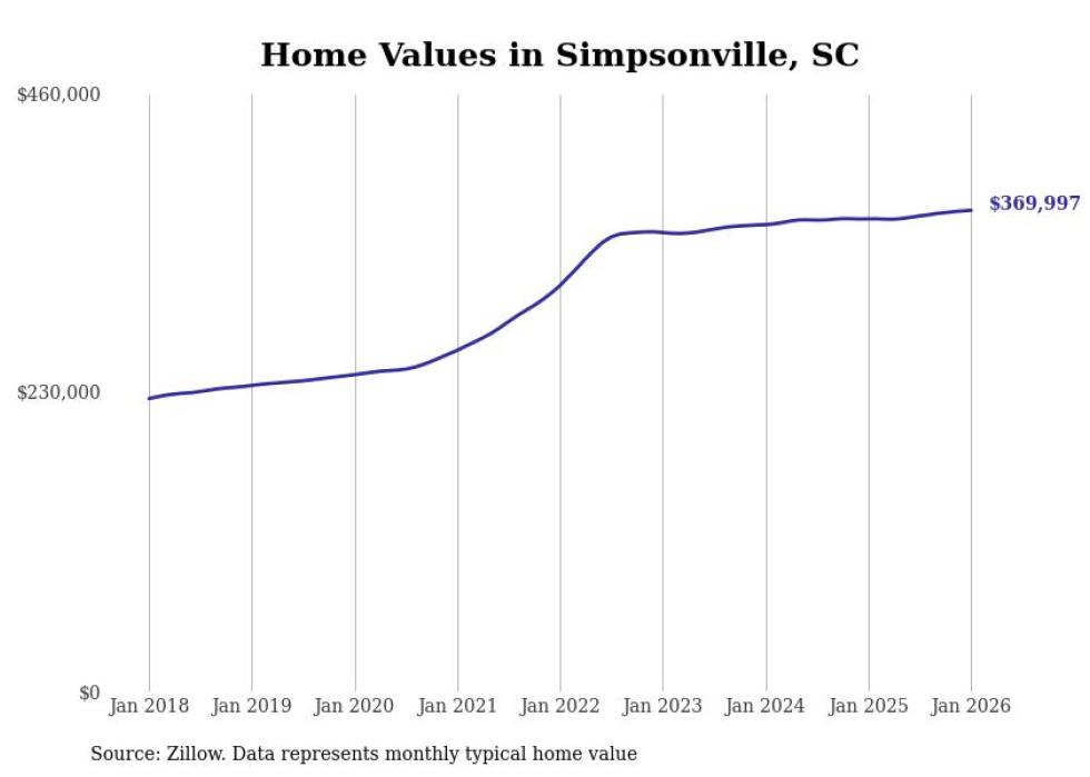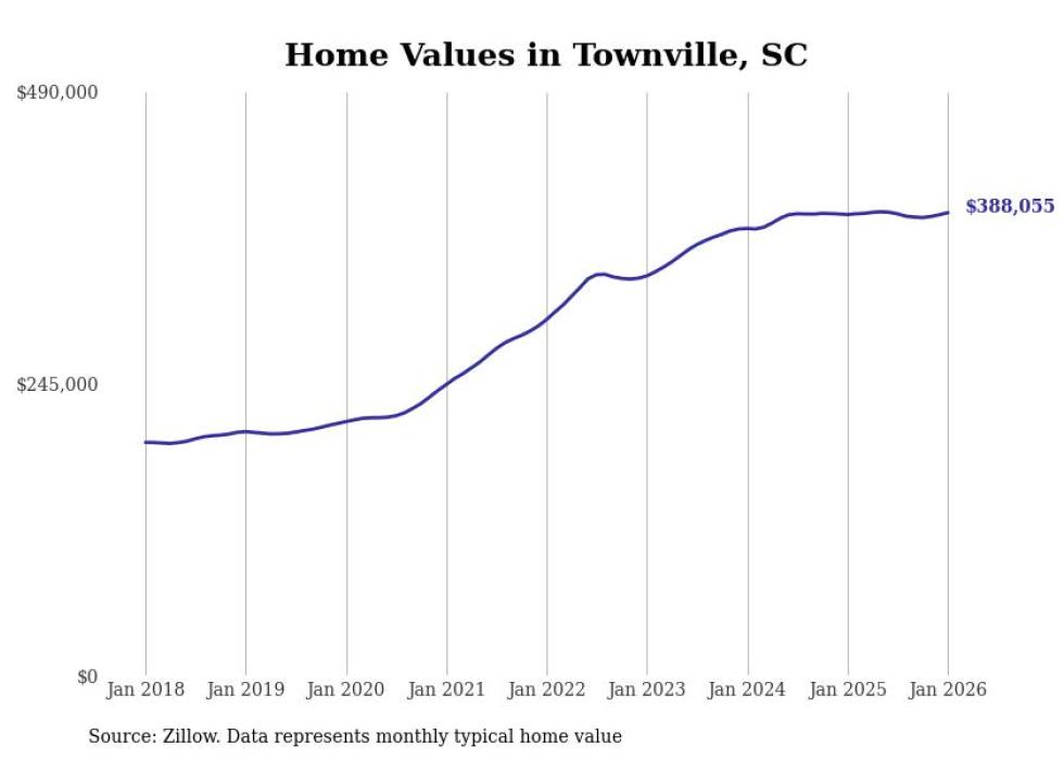 Stacker compiled a list of cities with the most expensive homes in the Greenville metro area using data from Zillow. Charts show the monthly typical home value since January 2018. Data was available for 33 cities and towns.