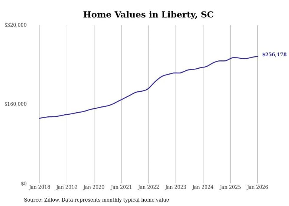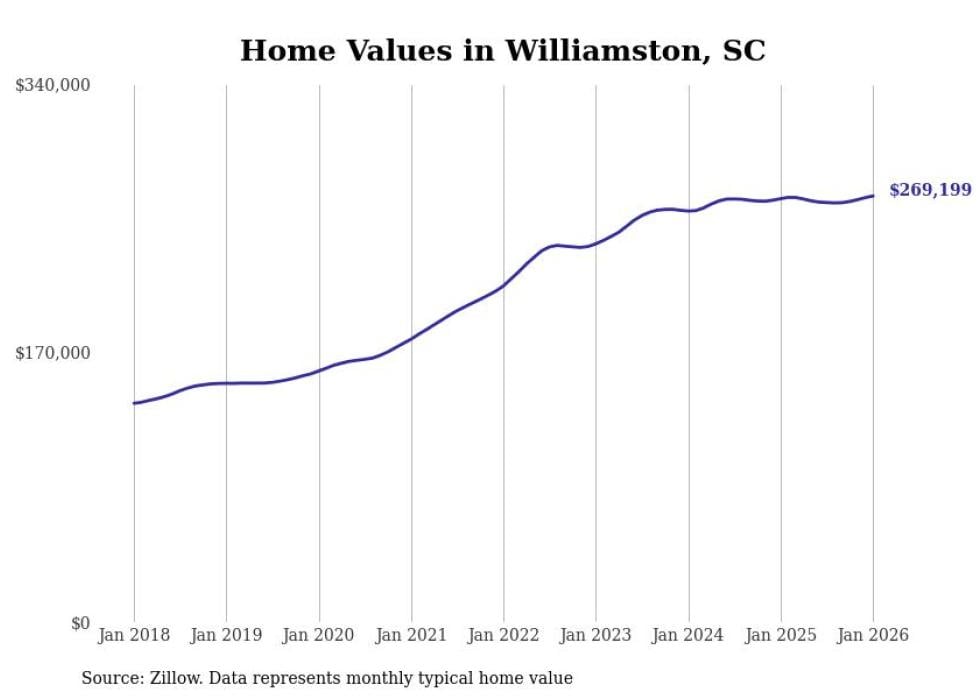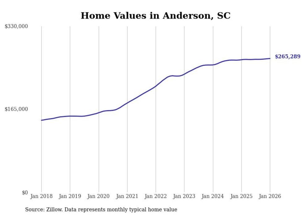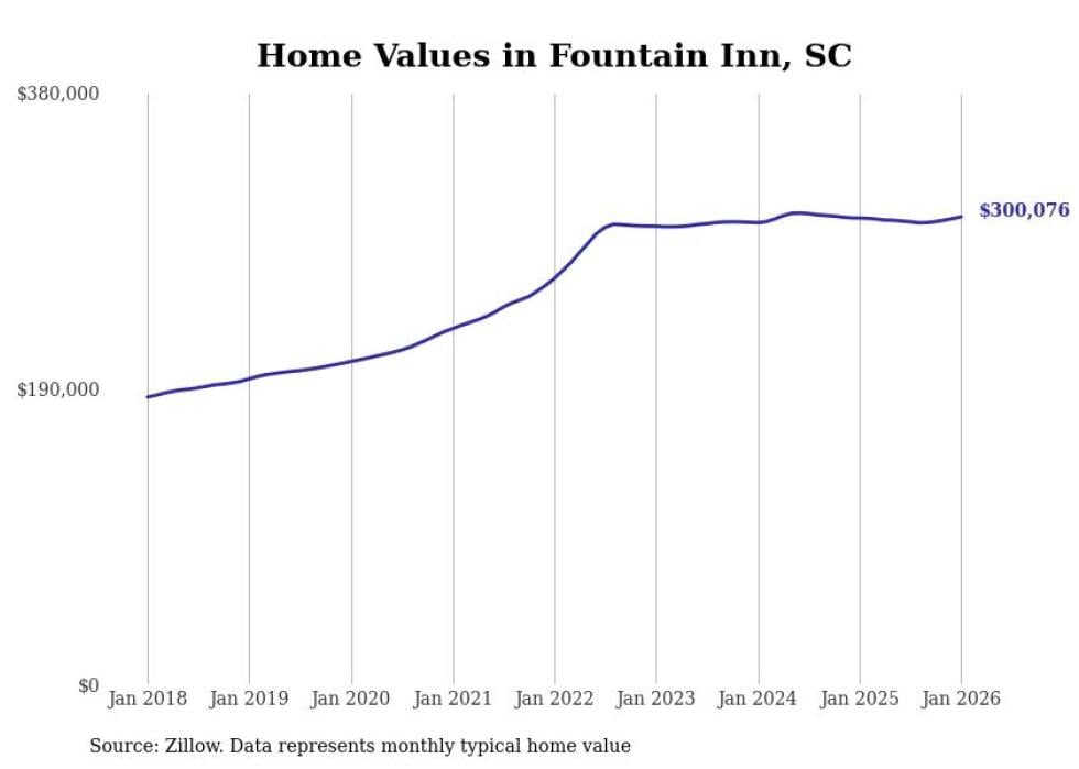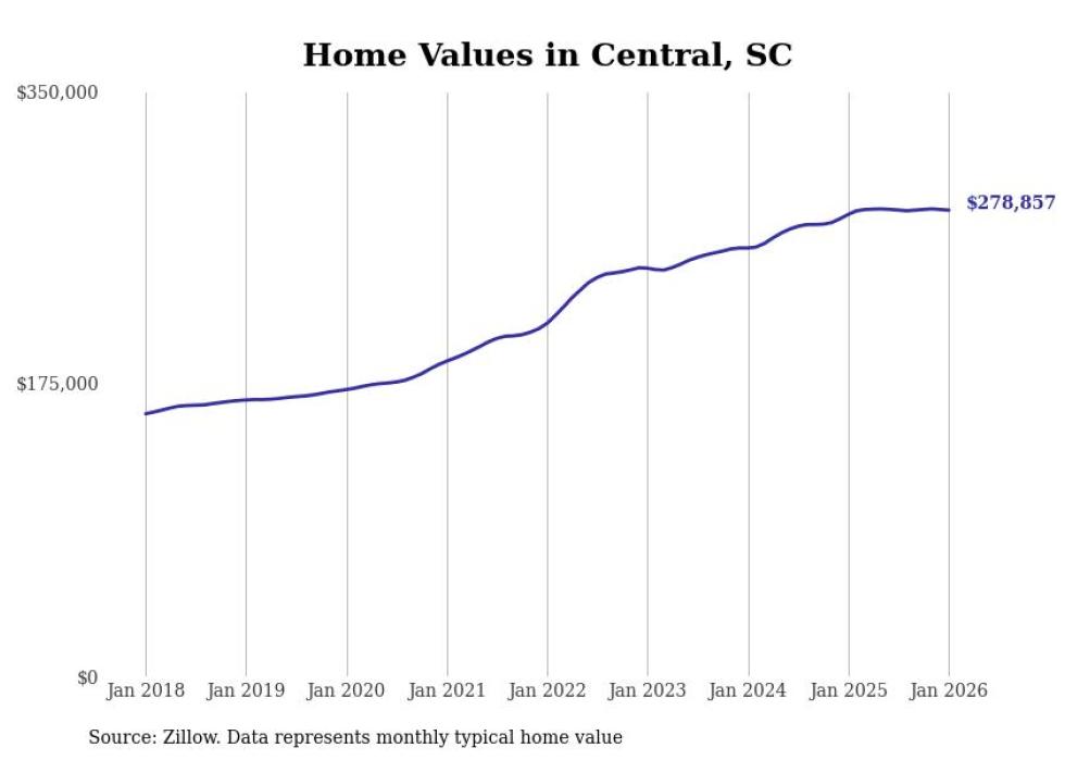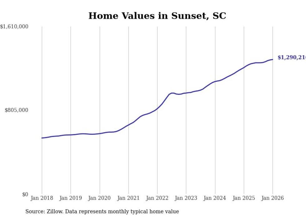 Stacker compiled a list of cities with the most expensive homes in the Greenville metro area using data from Zillow. Charts show the monthly typical home value since January 2018. Data was available for 33 cities and towns.