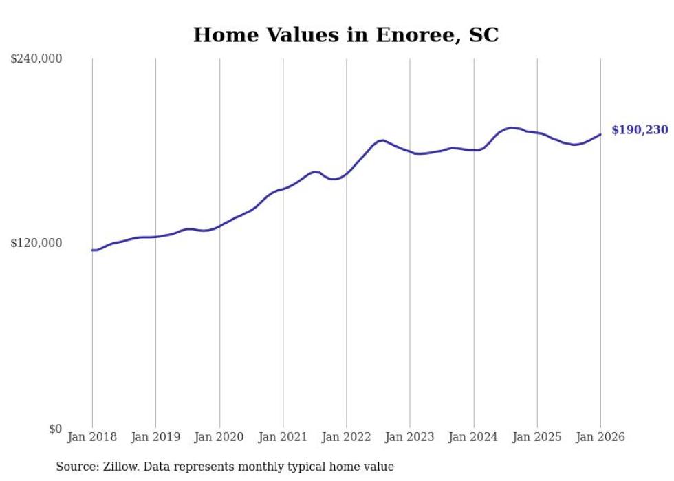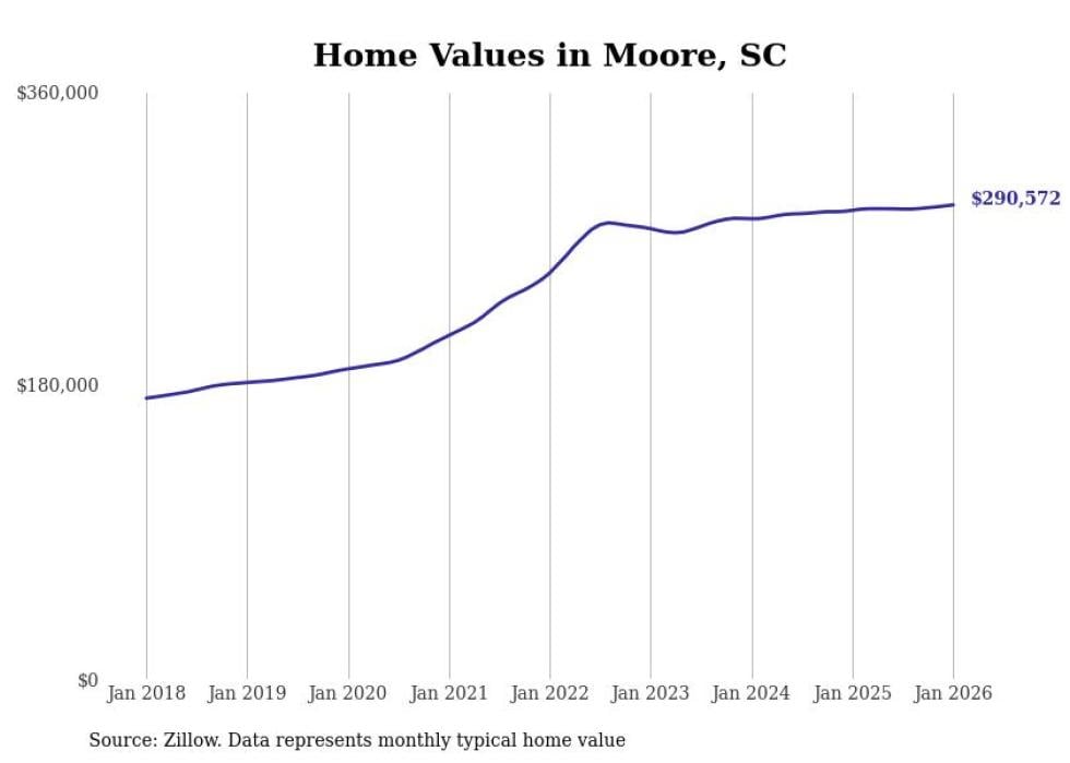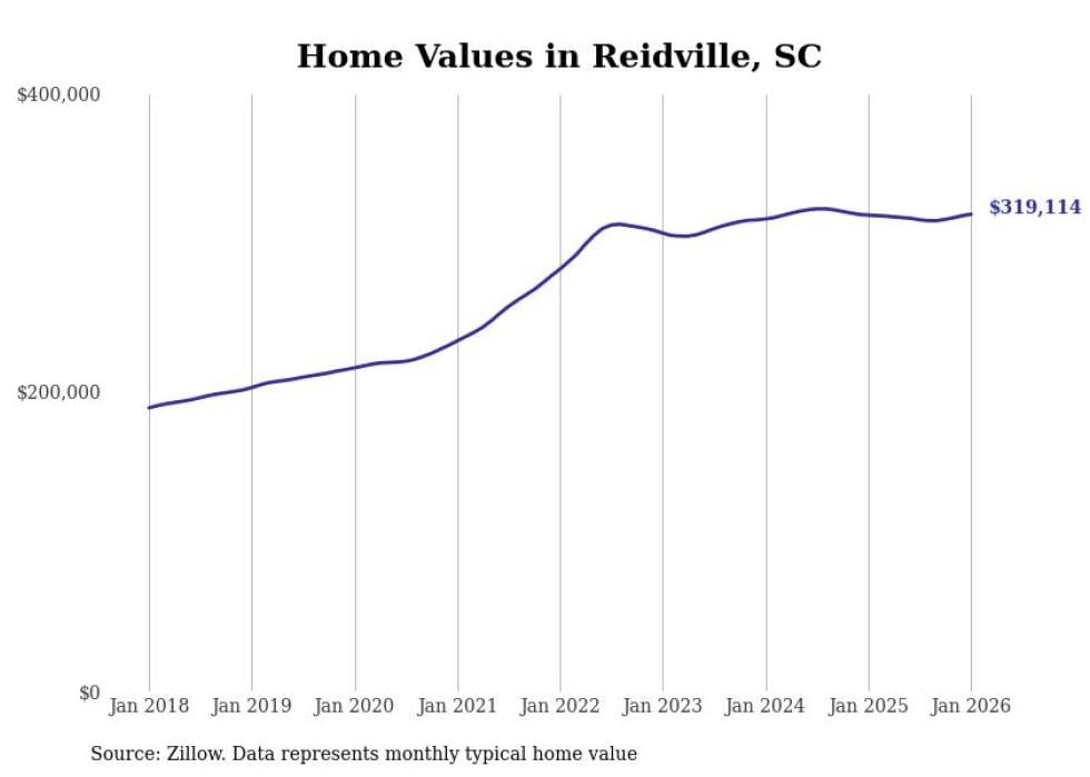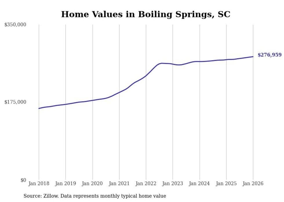 Stacker compiled a list of cities with the most expensive homes in the Spartanburg metro area using data from Zillow. Charts show the monthly typical home value since January 2018. All 15 cities and towns with data available were included in the list.