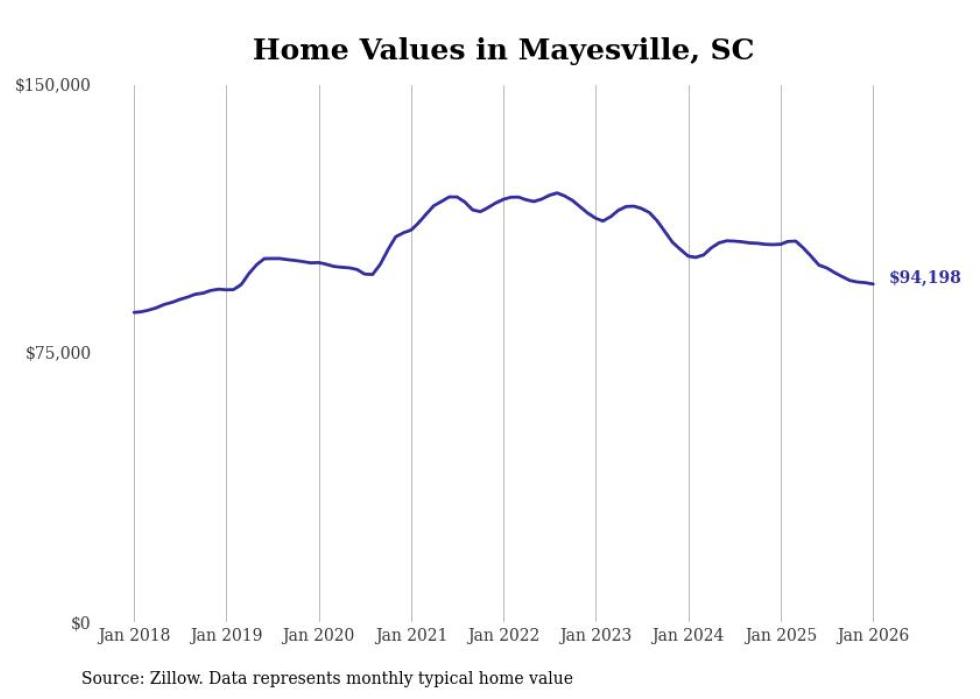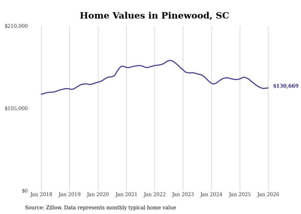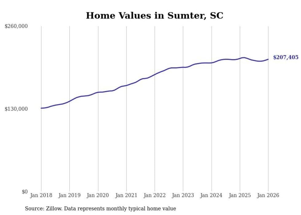 Stacker compiled a list of cities with the most expensive homes in the Sumter, SC metro area using data from Zillow. Charts show the monthly typical home value since January 2018.