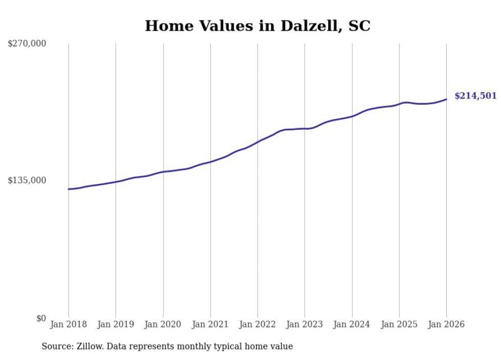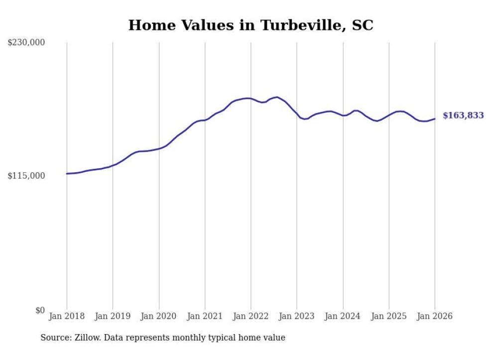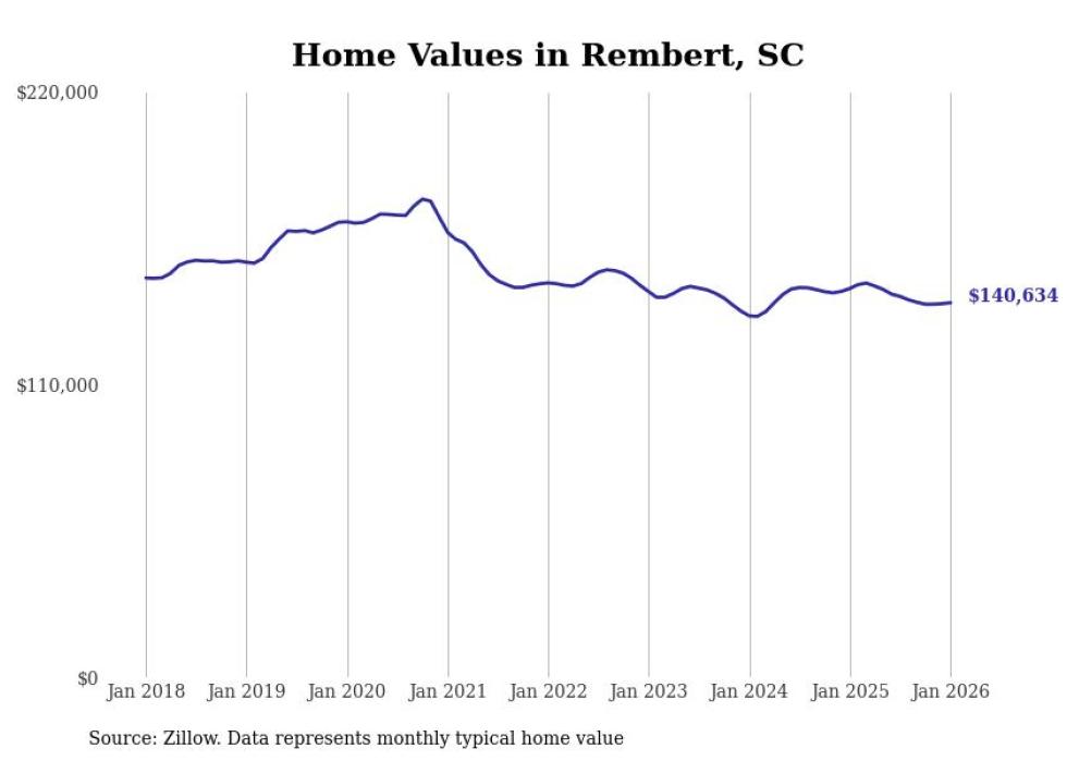 Stacker compiled a list of cities with the most expensive homes in the Sumter metro area using data from Zillow. Charts show the monthly typical home value since January 2018. All 14 cities and towns with data available were included in the list.
