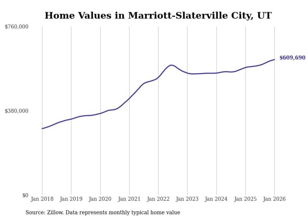 Stacker compiled a list of cities with the most expensive homes in the Ogden metro area using data from Zillow. Charts show the monthly typical home value since January 2018. Data was available for 36 cities and towns.