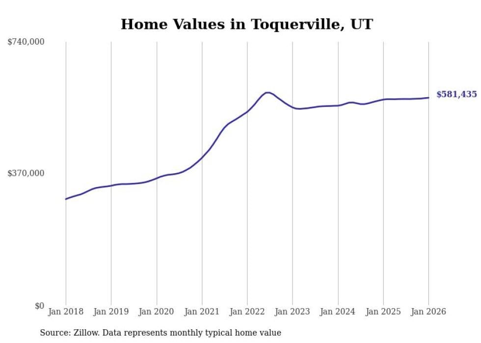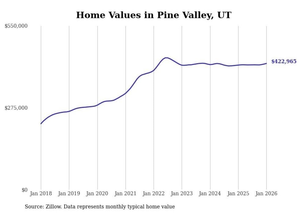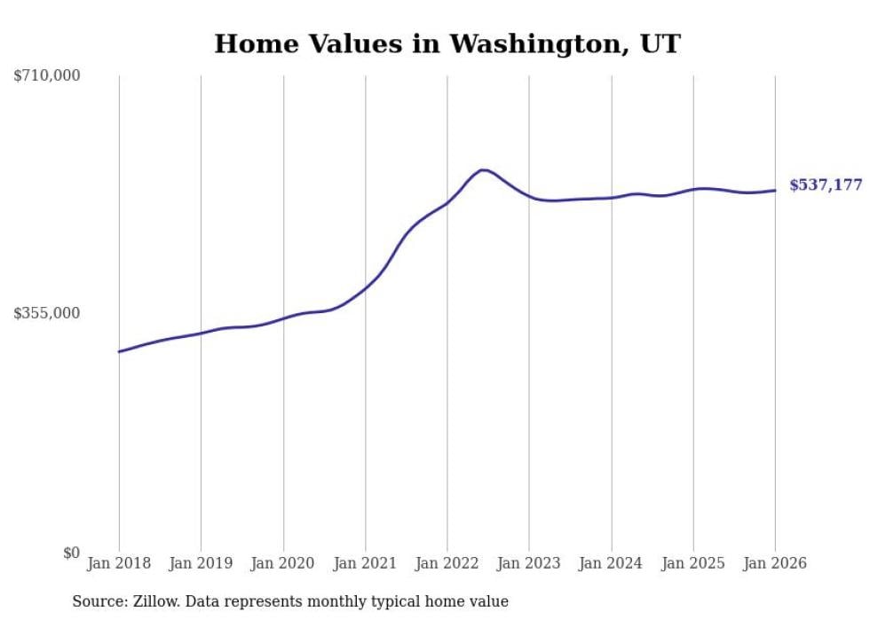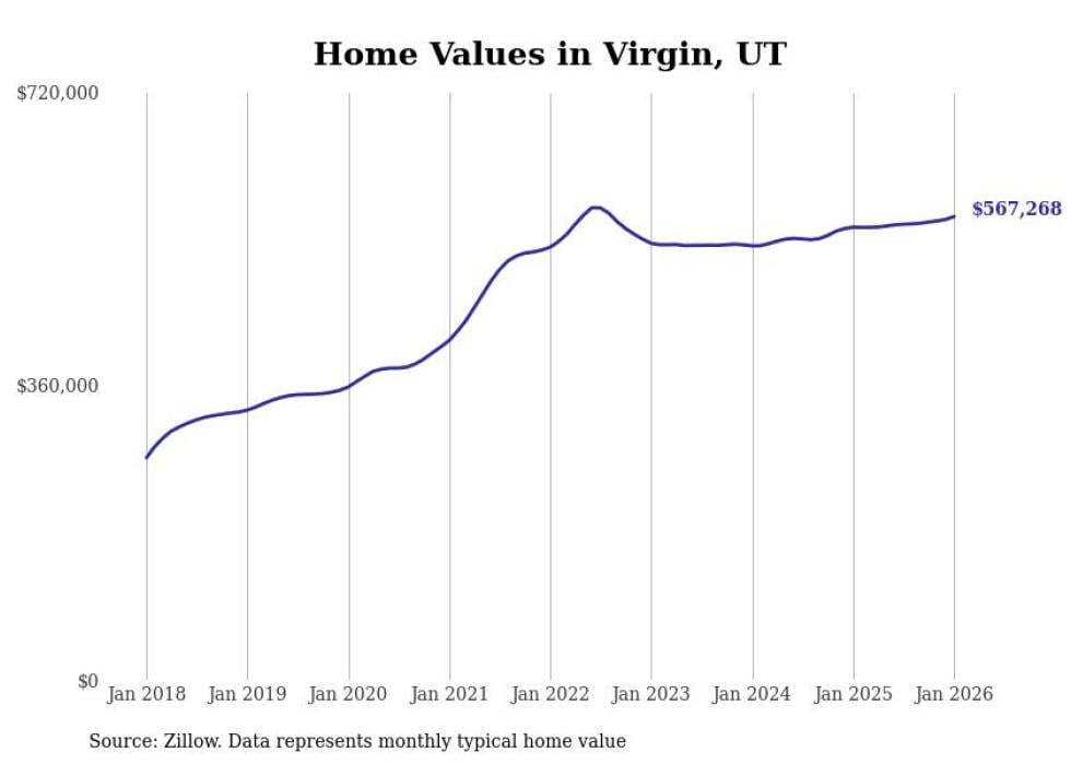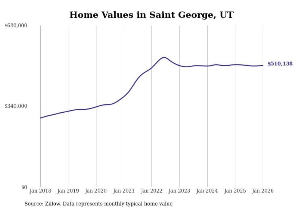 Stacker compiled a list of cities with the most expensive homes in the St. George, UT metro area using data from Zillow. Charts show the monthly typical home value since January 2018.