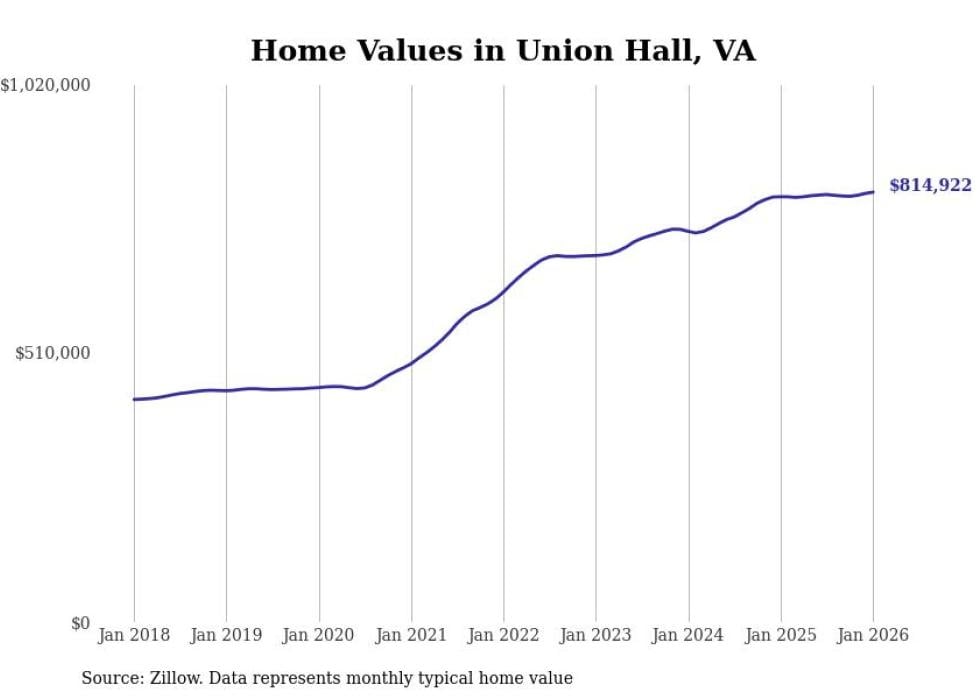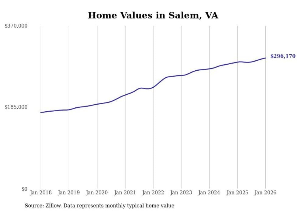 Stacker compiled a list of cities with the most expensive homes in the Roanoke, VA metro area using data from Zillow. Charts show the monthly typical home value since January 2018.