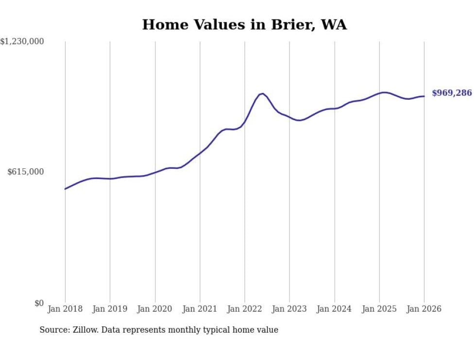 Stacker compiled a list of cities with the most expensive homes in Washington using data from Zillow. Cities are ranked by the Zillow Home Values Index for all homes as of January 2026. The charts in this story were created automatically using Matplotlib.