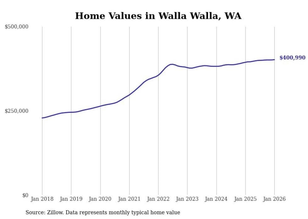 Stacker compiled a list of cities with the most expensive homes in the Walla Walla metro area using data from Zillow. Charts show the monthly typical home value since January 2018. All 6 cities and towns with data available were included in the list.