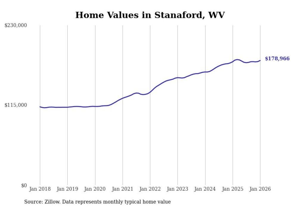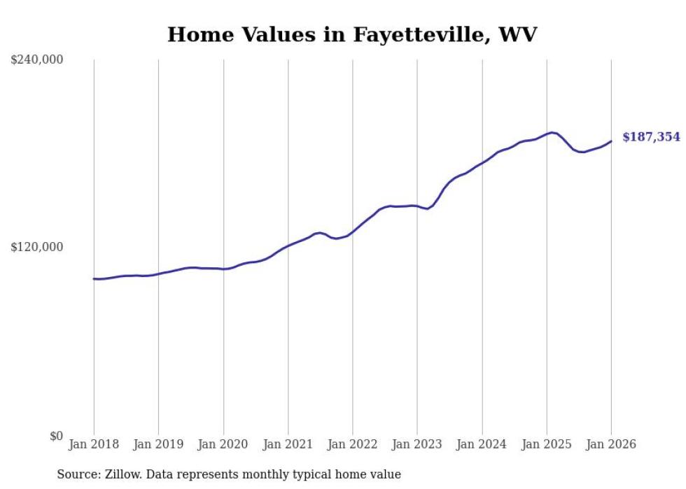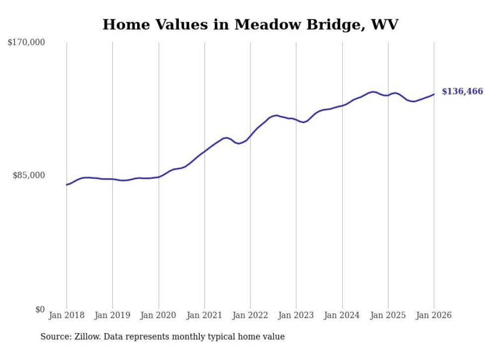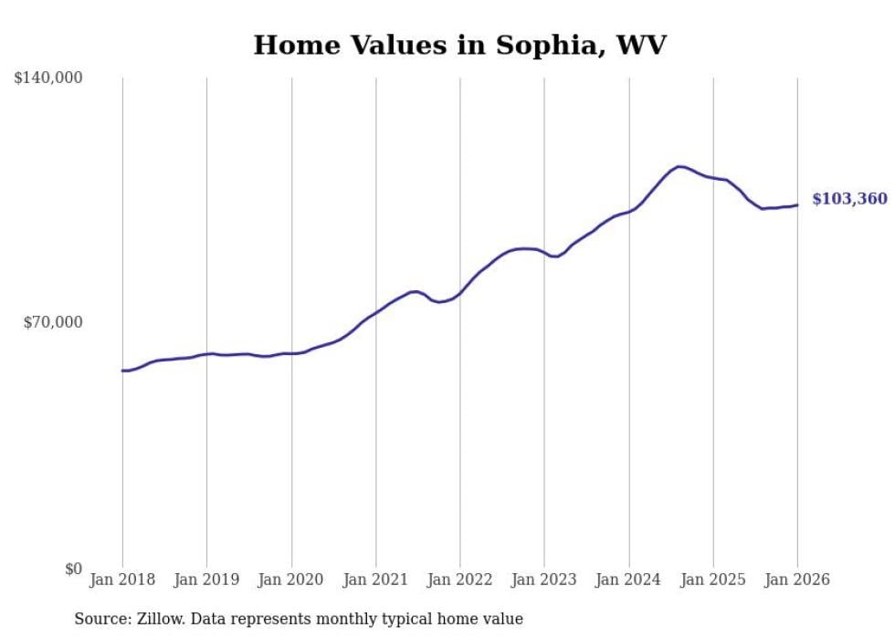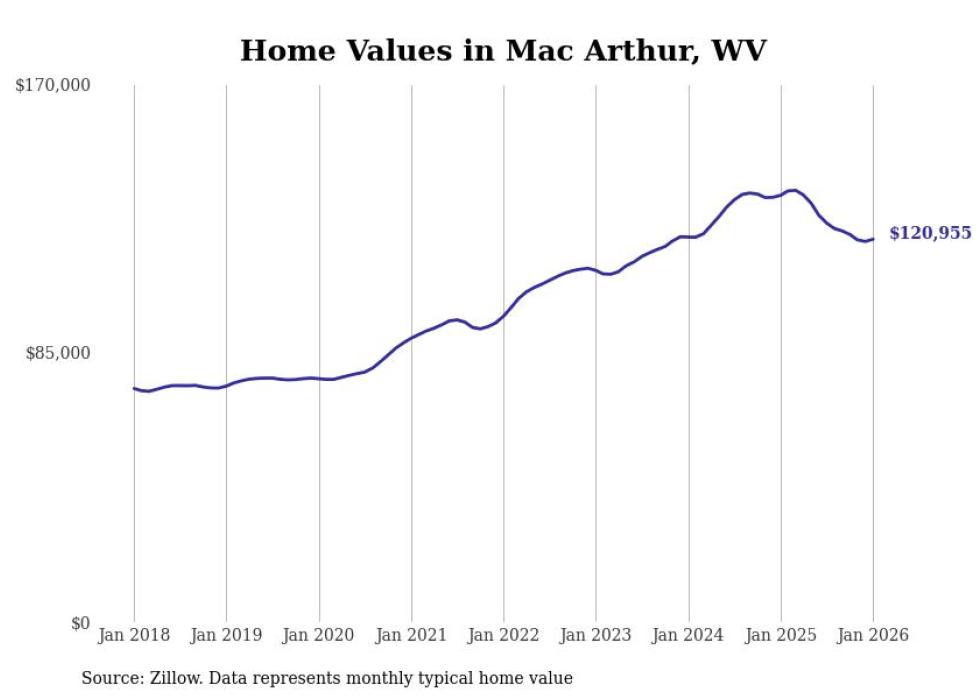 Stacker compiled a list of cities with the most expensive homes in the Beckley metro area using data from Zillow. Charts show the monthly typical home value since January 2018. Data was available for 38 cities and towns.