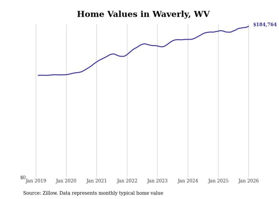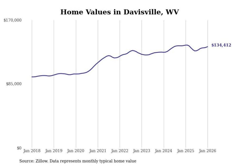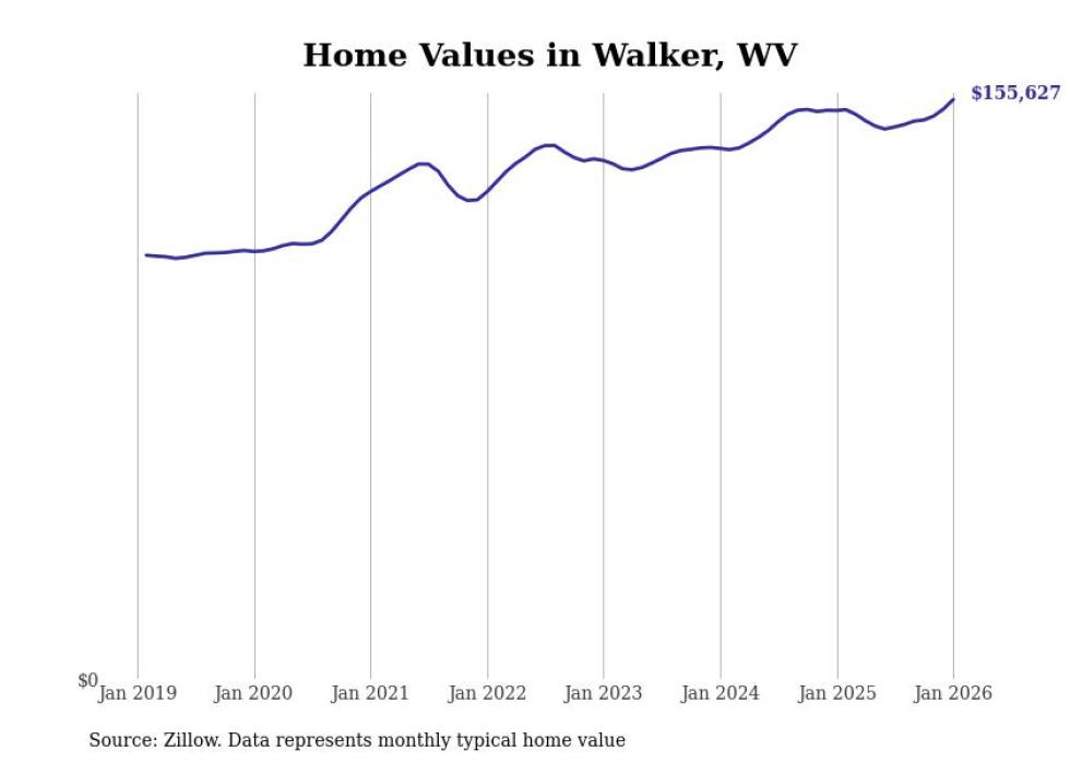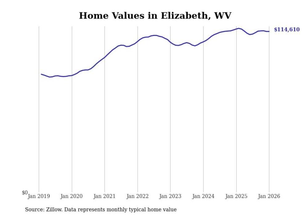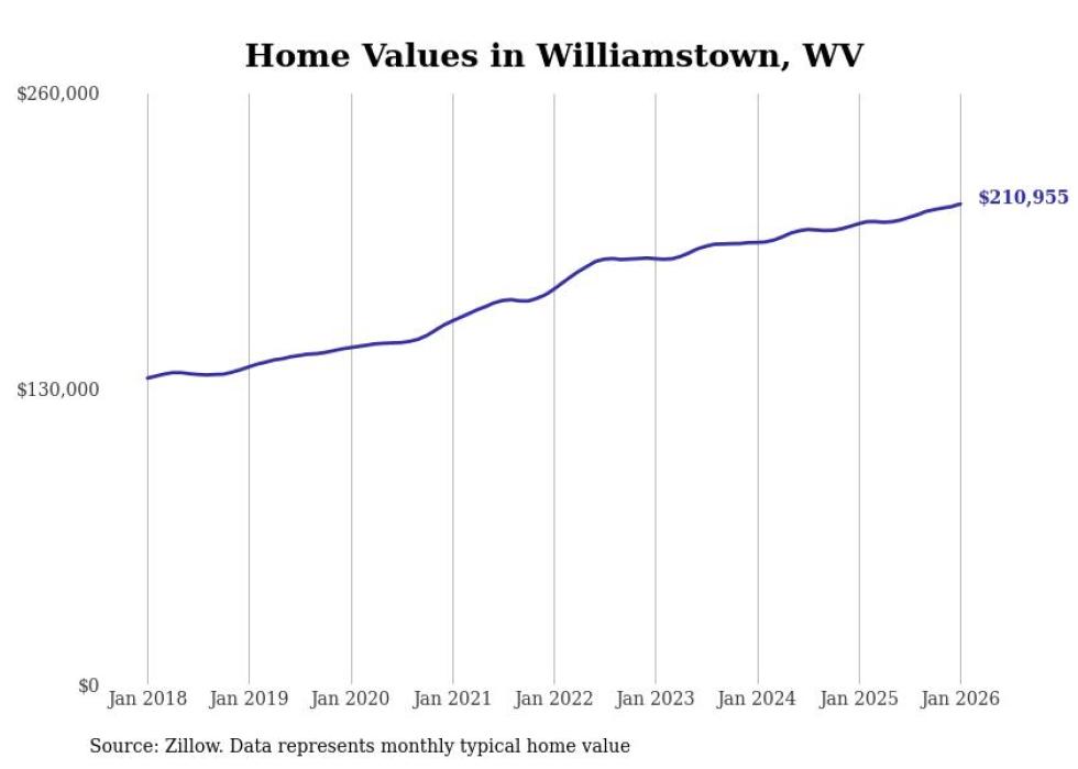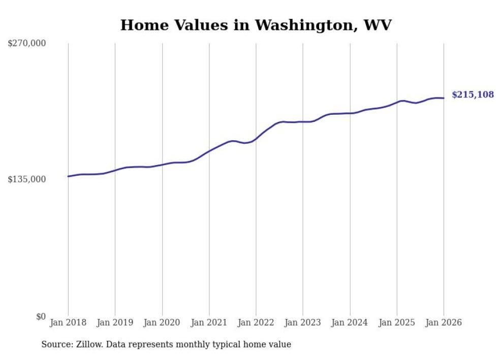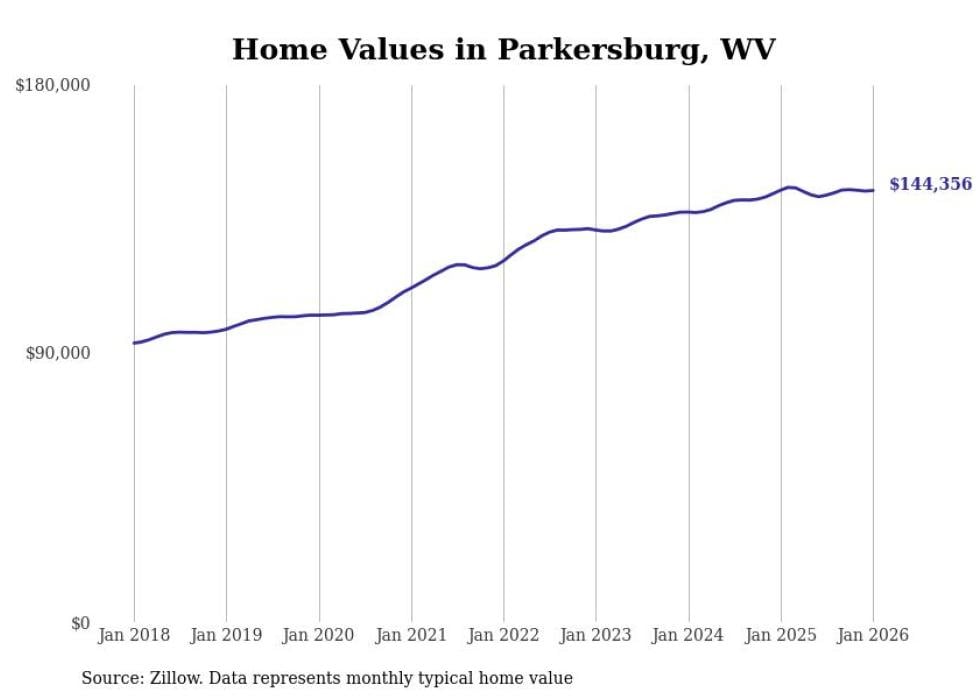 Stacker compiled a list of cities with the most expensive homes in the Parkersburg metro area using data from Zillow. Charts show the monthly typical home value since January 2018. All 12 cities and towns with data available were included in the list.