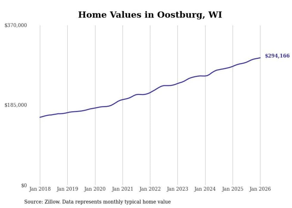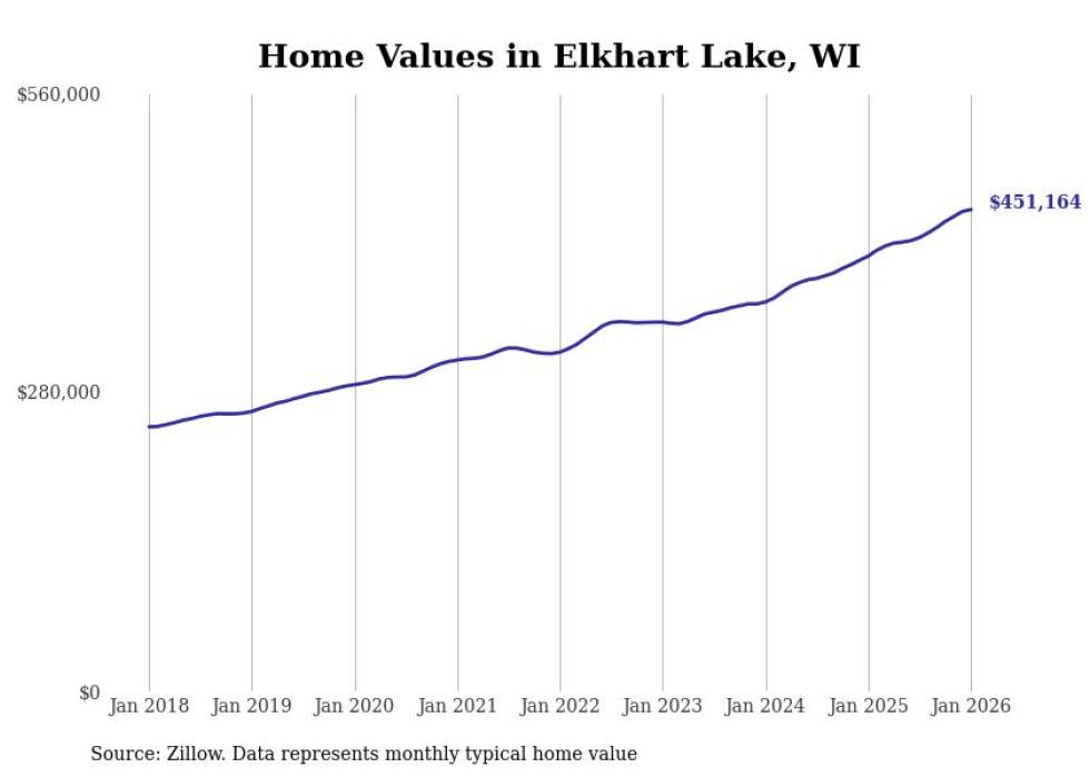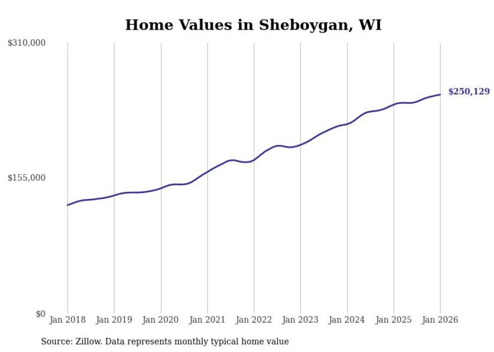 Stacker compiled a list of cities with the most expensive homes in the Sheboygan metro area using data from Zillow. Charts show the monthly typical home value since January 2018. All 18 cities and towns with data available were included in the list.